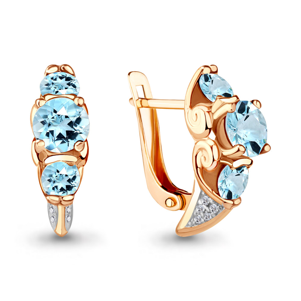 4298202А Серьги из Серебра с топазами скай блю, фианитами