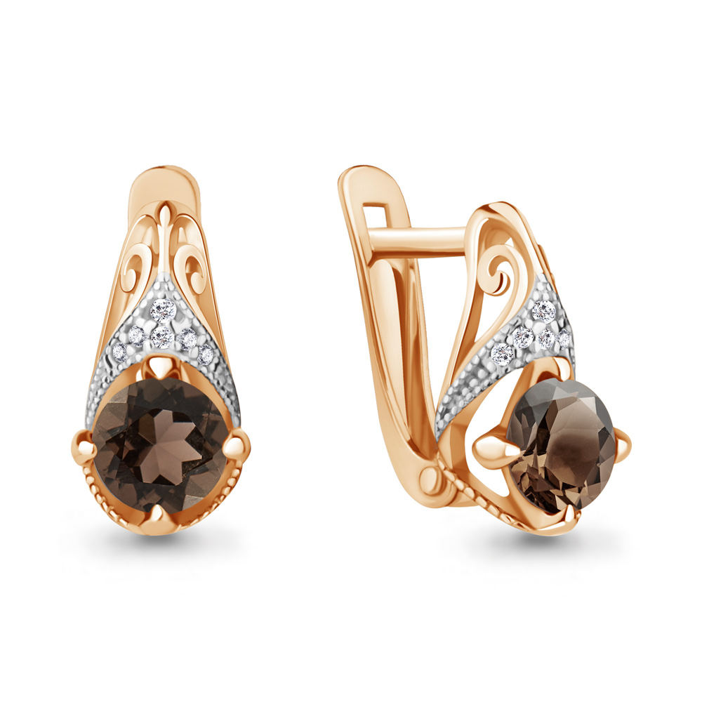 4298401А Серьги из Серебра с кварцами дымчатыми, фианитами