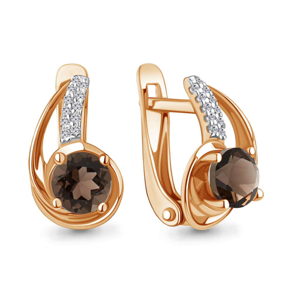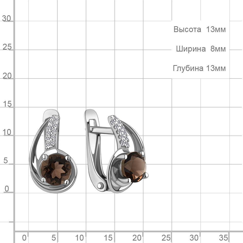 4298501А Серьги из Серебра с кварцами дымчатыми, фианитами