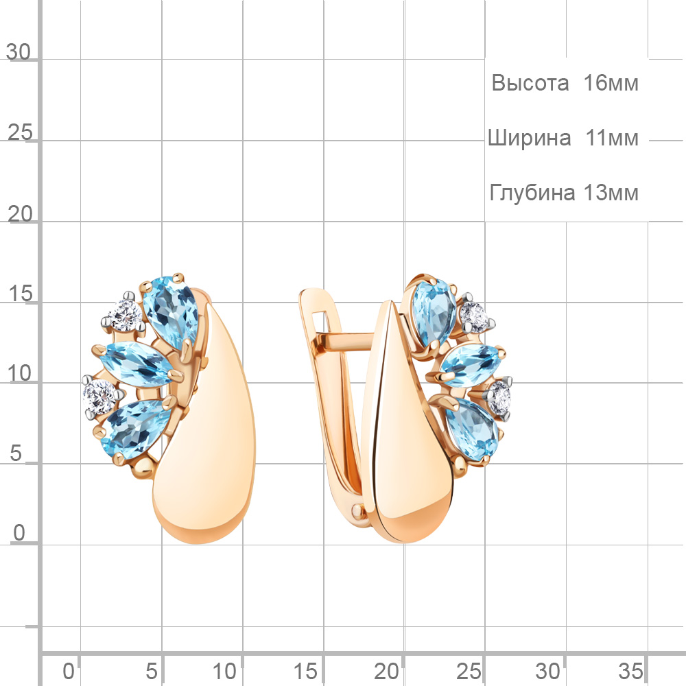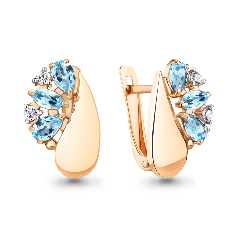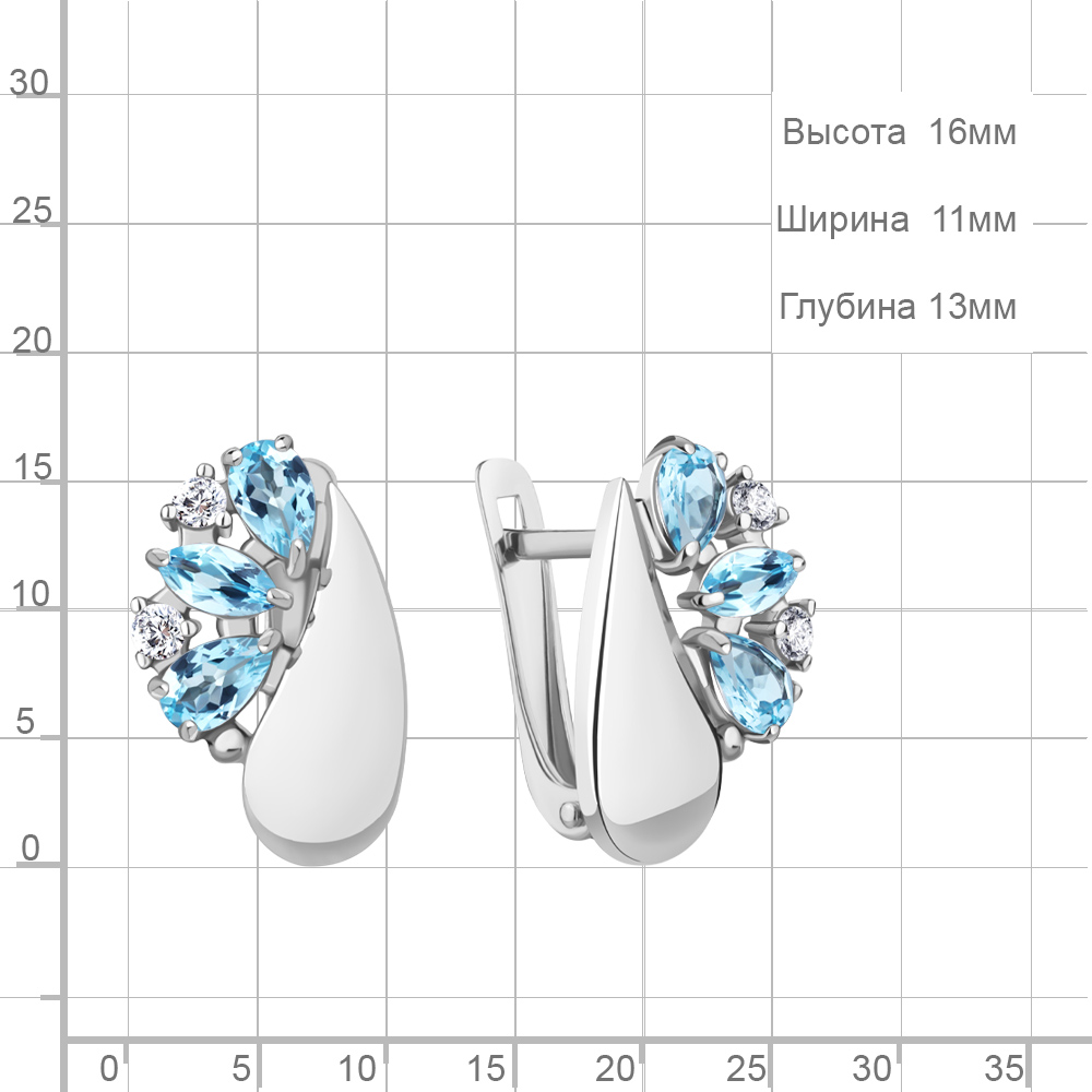 4319905А Серьги из Серебра с топазами свисс блю, фианитами