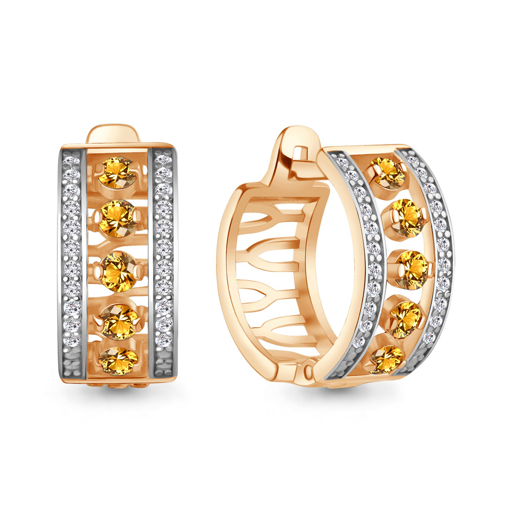 4320406А Серьги из Серебра с фианитами, цитринами