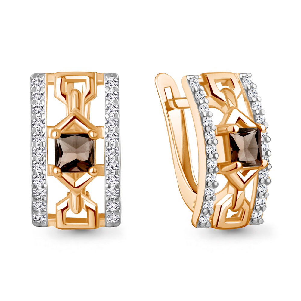 4320601А Серьги из Серебра с кварцами дымчатыми, фианитами