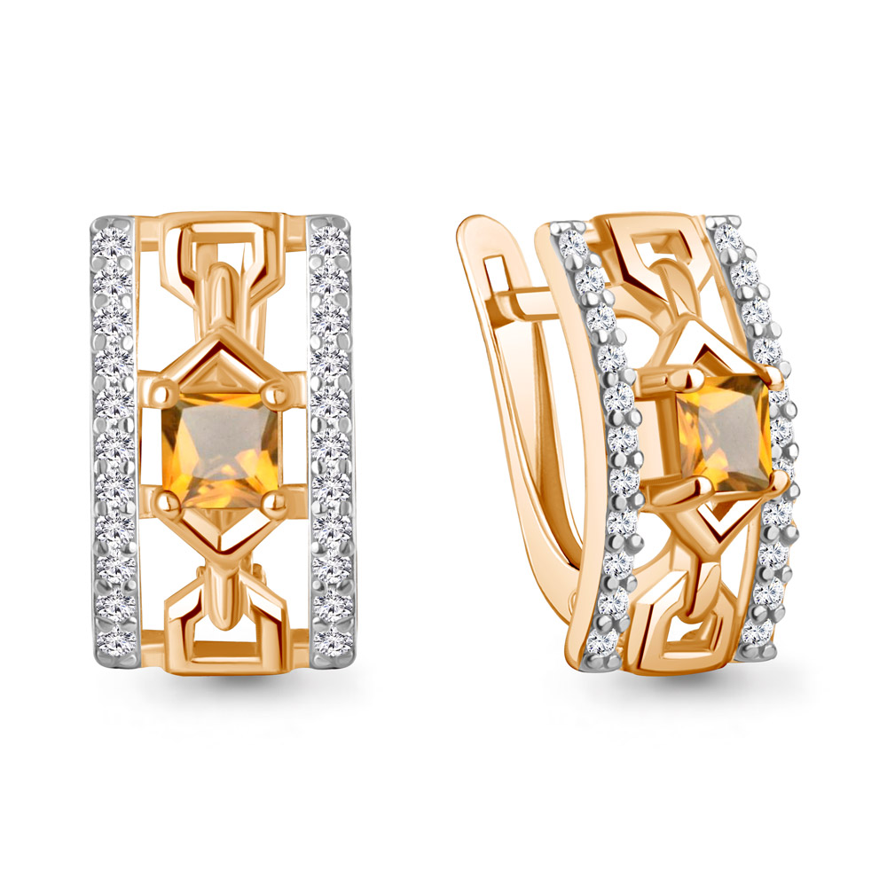 4320606А Серьги из Серебра с фианитами, цитринами