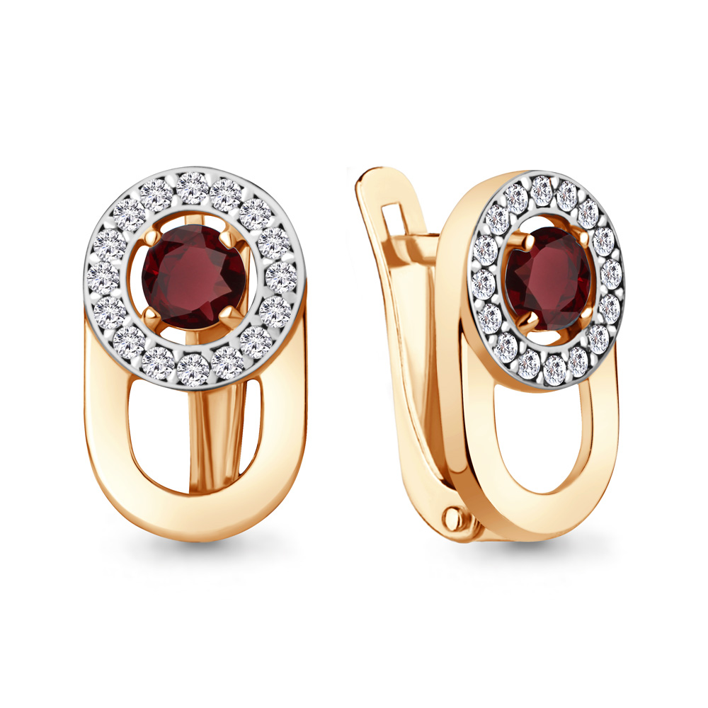 4321203А Серьги из Серебра с гранатами, фианитами