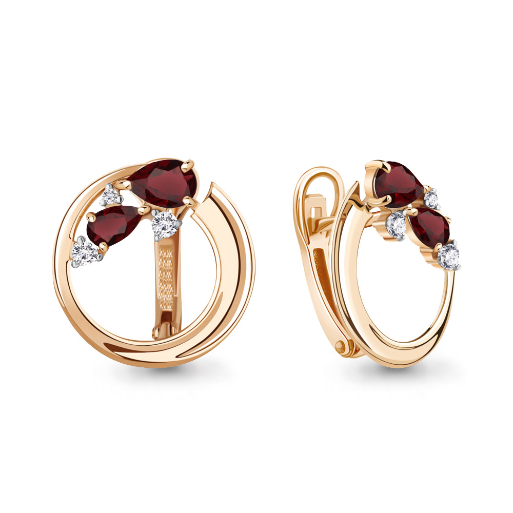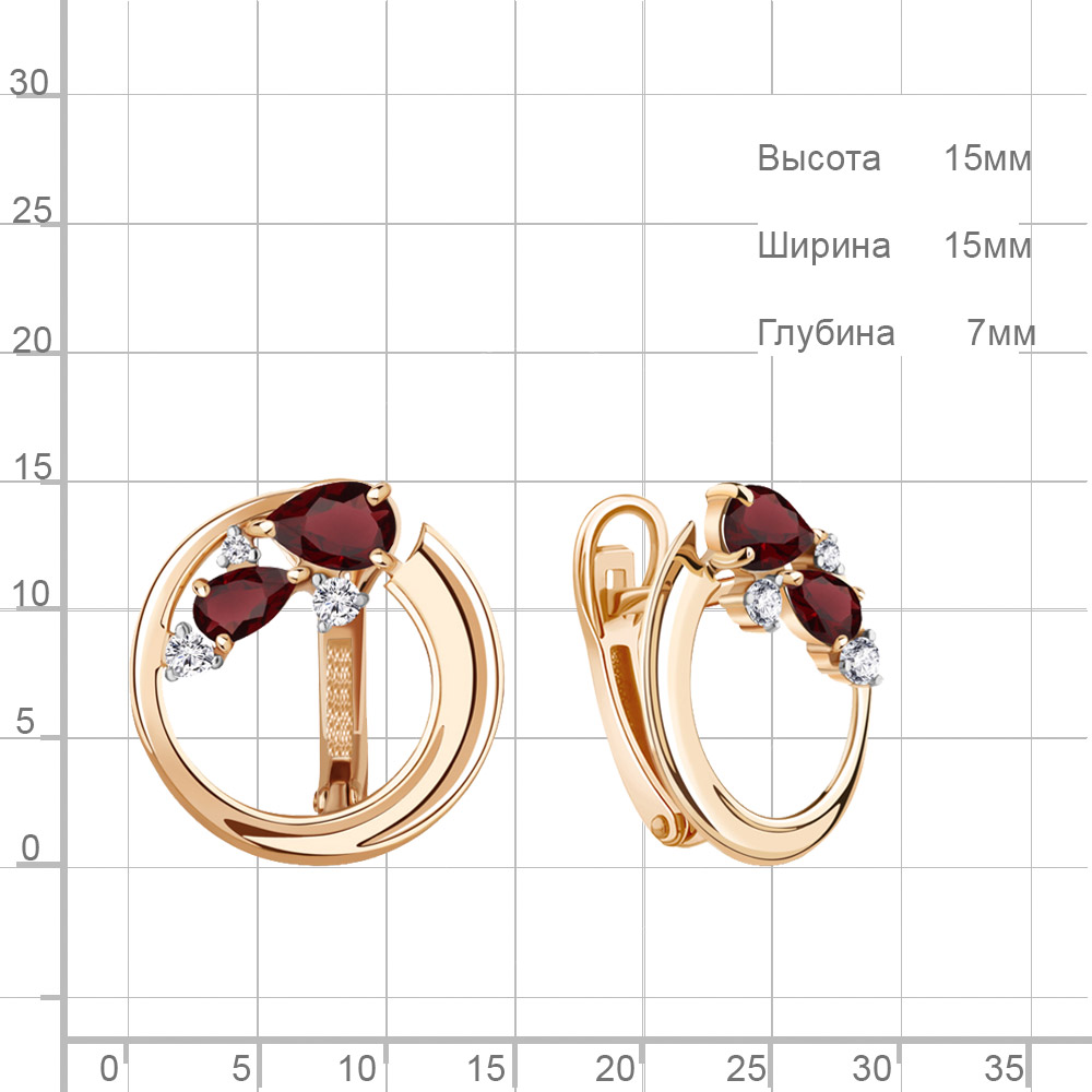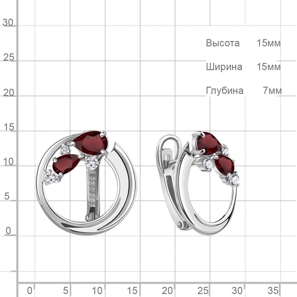 4323203А Серьги из Серебра с гранатами, фианитами