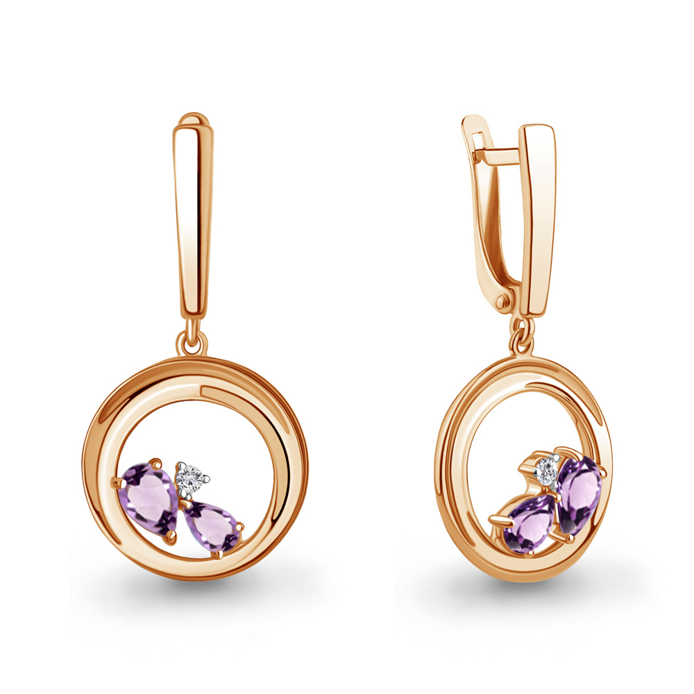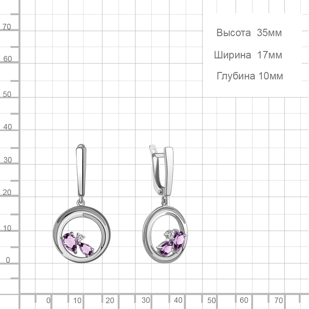 4323304А Серьги из Серебра с аметистами, фианитами