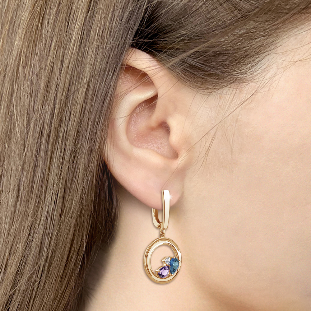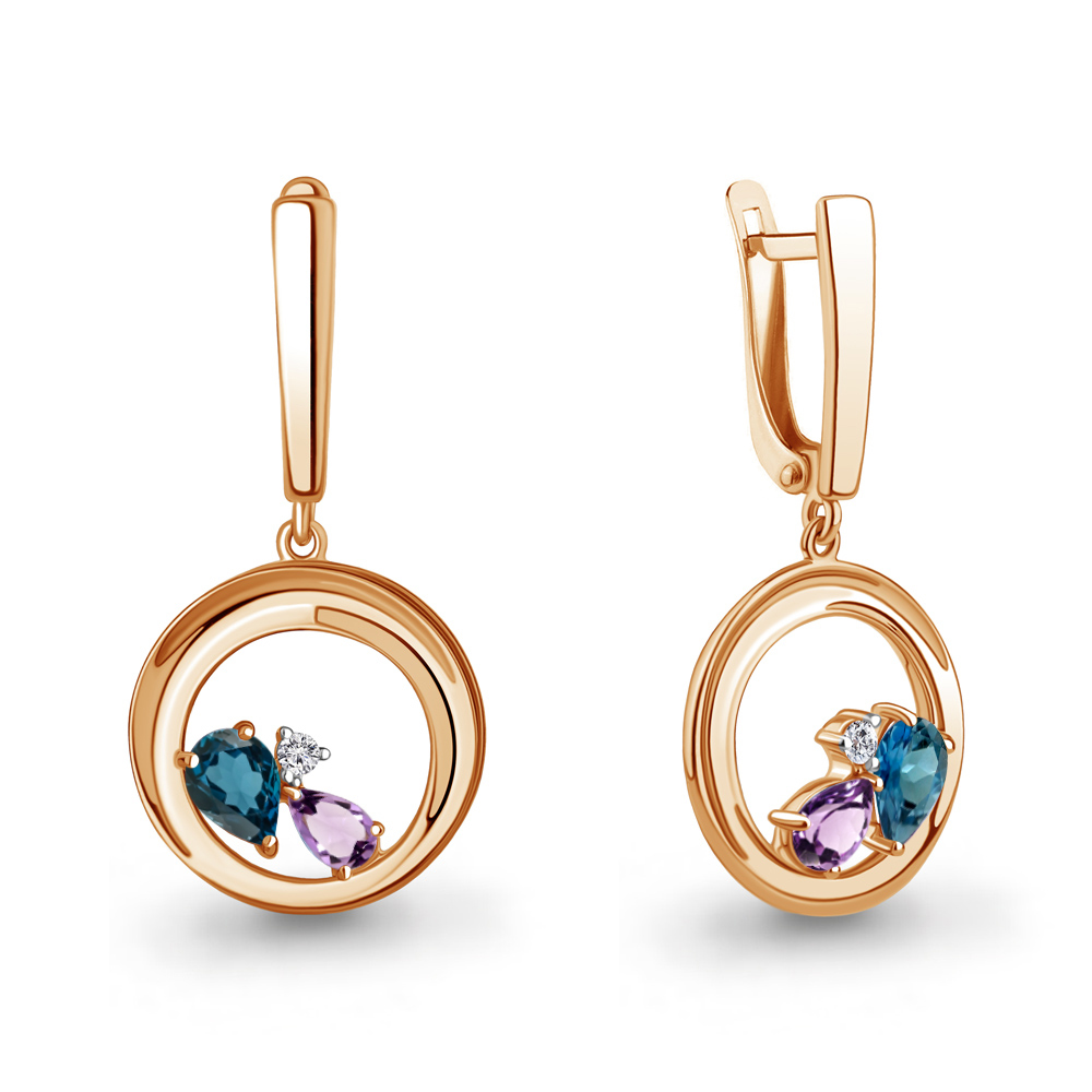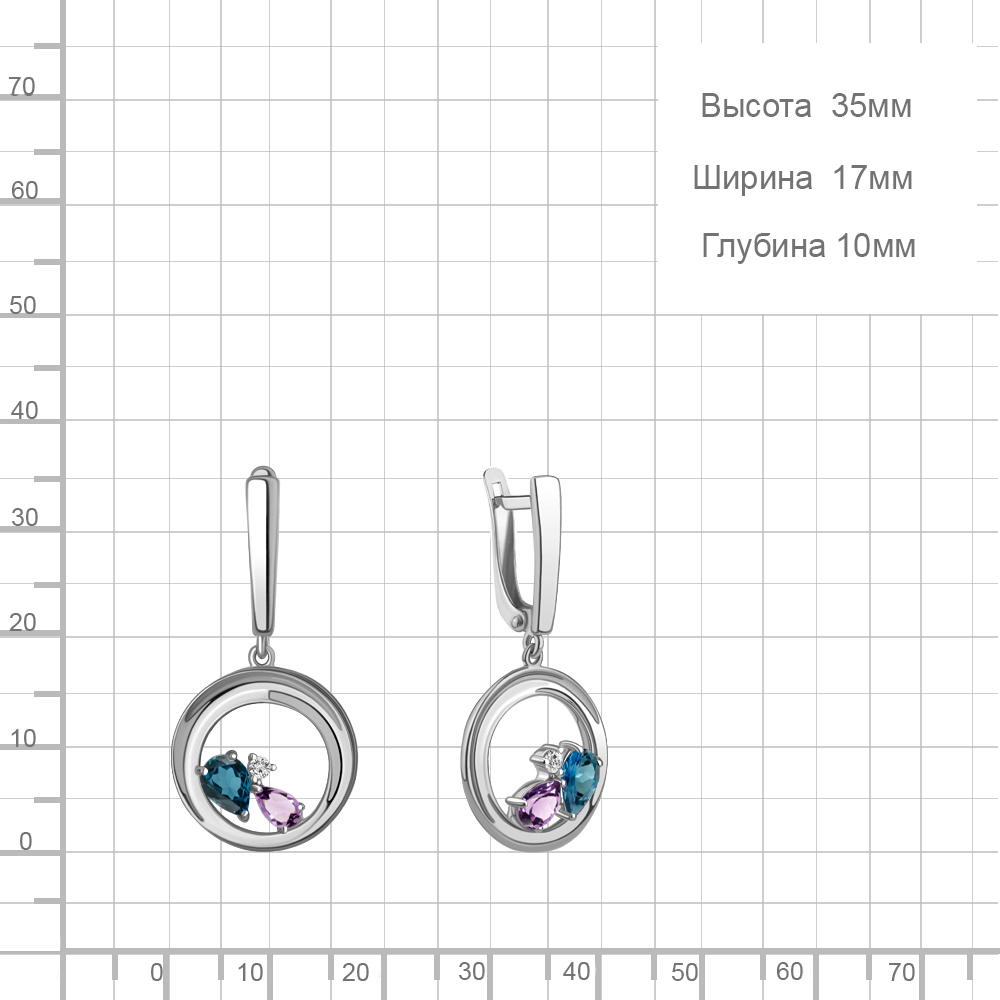 4323332А Серьги из Серебра с аметистами, топазами лондон блю, фианитами