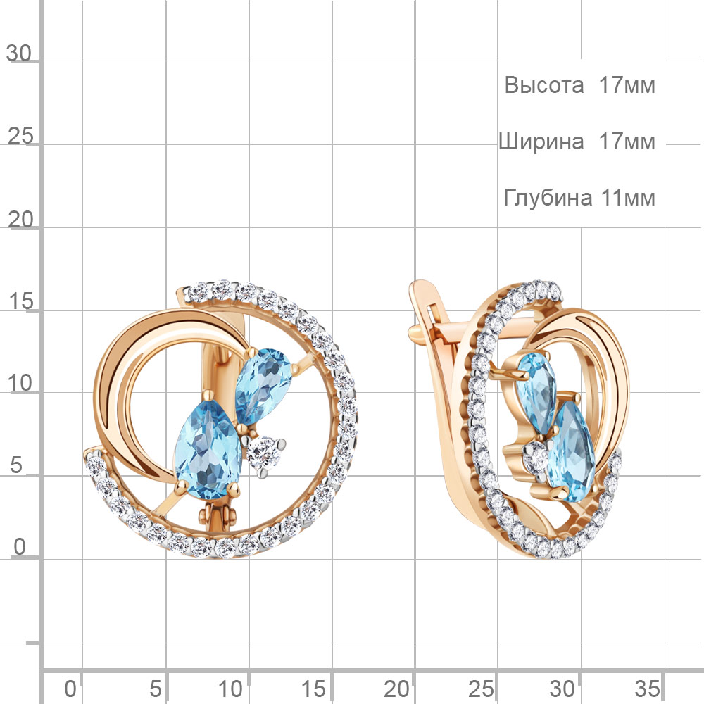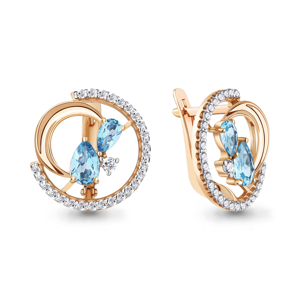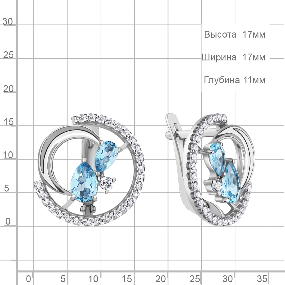 4323405А Серьги из Серебра с топазами свисс блю, фианитами