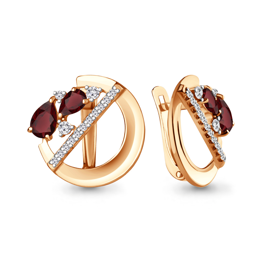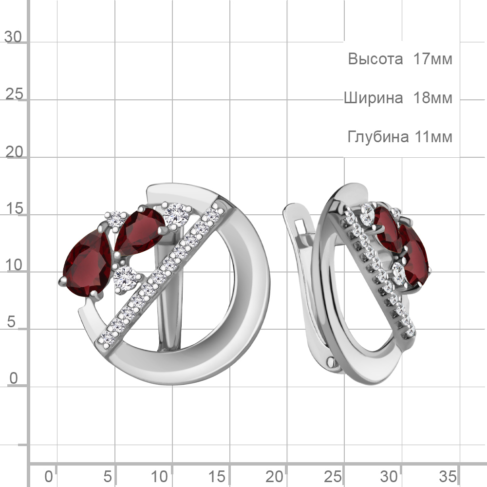 4323503А Серьги из Серебра с гранатами, фианитами
