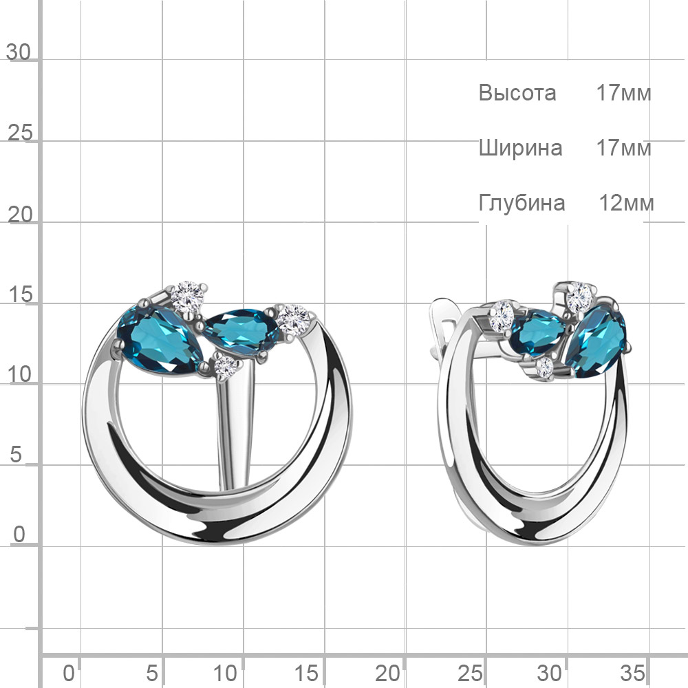 4323608А Серьги из Серебра с топазами лондон блю, фианитами
