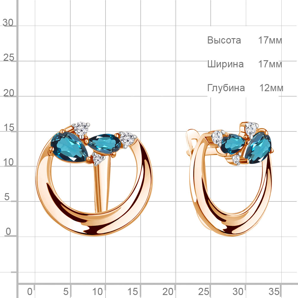 Описание камней 2 Топаз Лондон Блю; 2 Топаз Лондон Блю; 2 Фианит; 4 Фианит