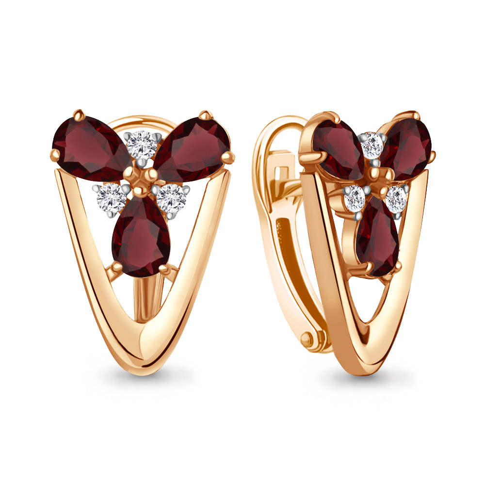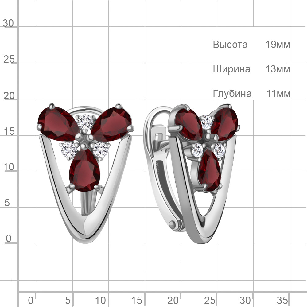 4324903А Серьги из Серебра с гранатами, фианитами