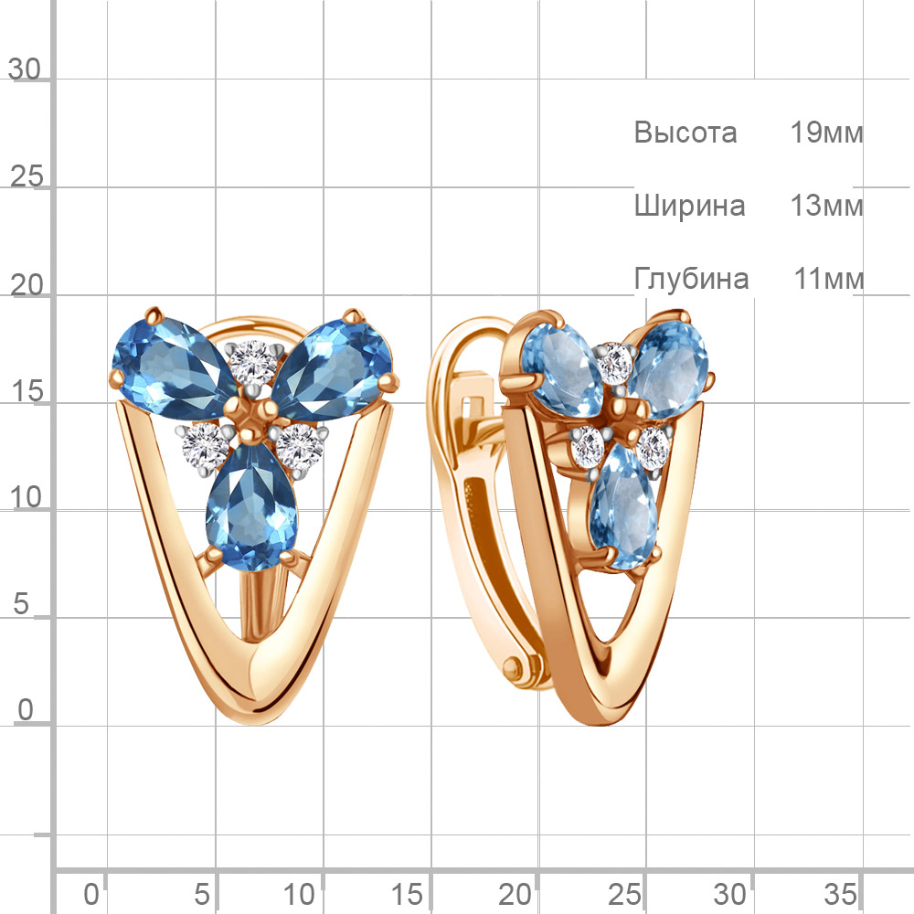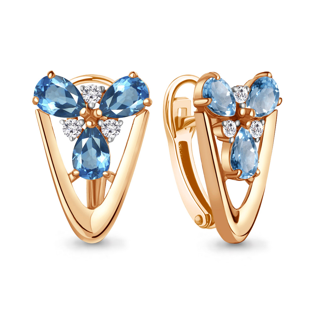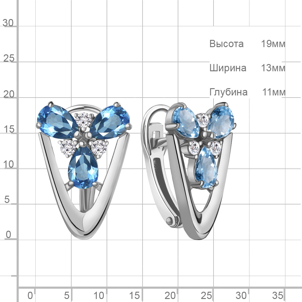 4324905А Серьги из Серебра с топазами свисс блю, фианитами