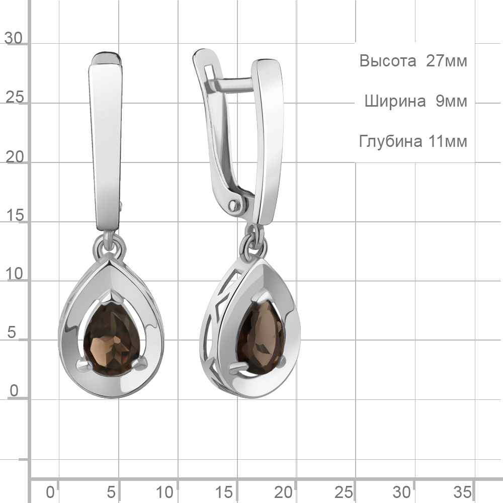 4327201 Серьги из Серебра с кварцами дымчатыми