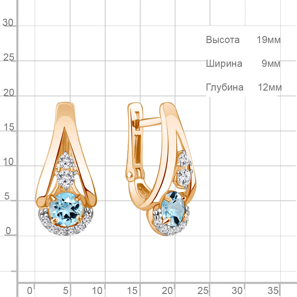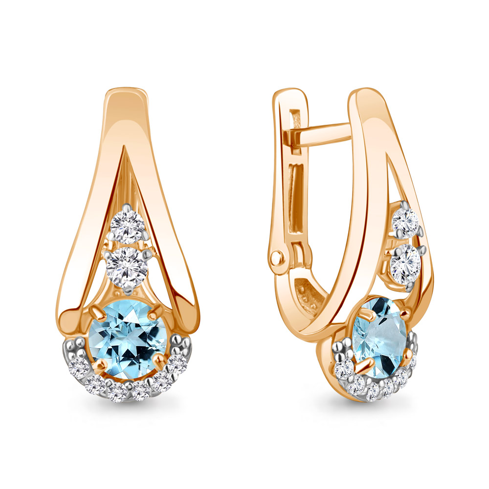 4327602А Серьги из Серебра с топазами скай блю, фианитами