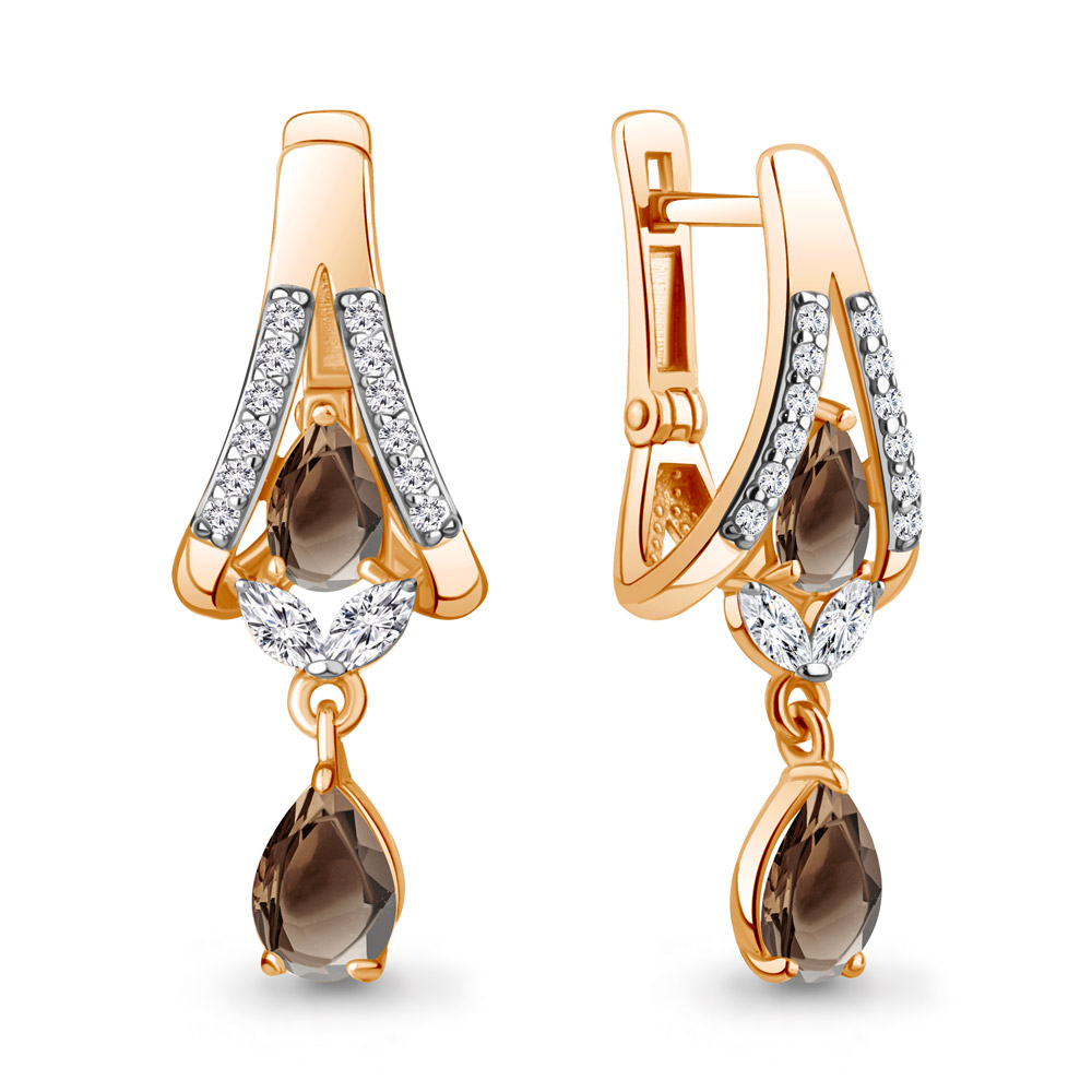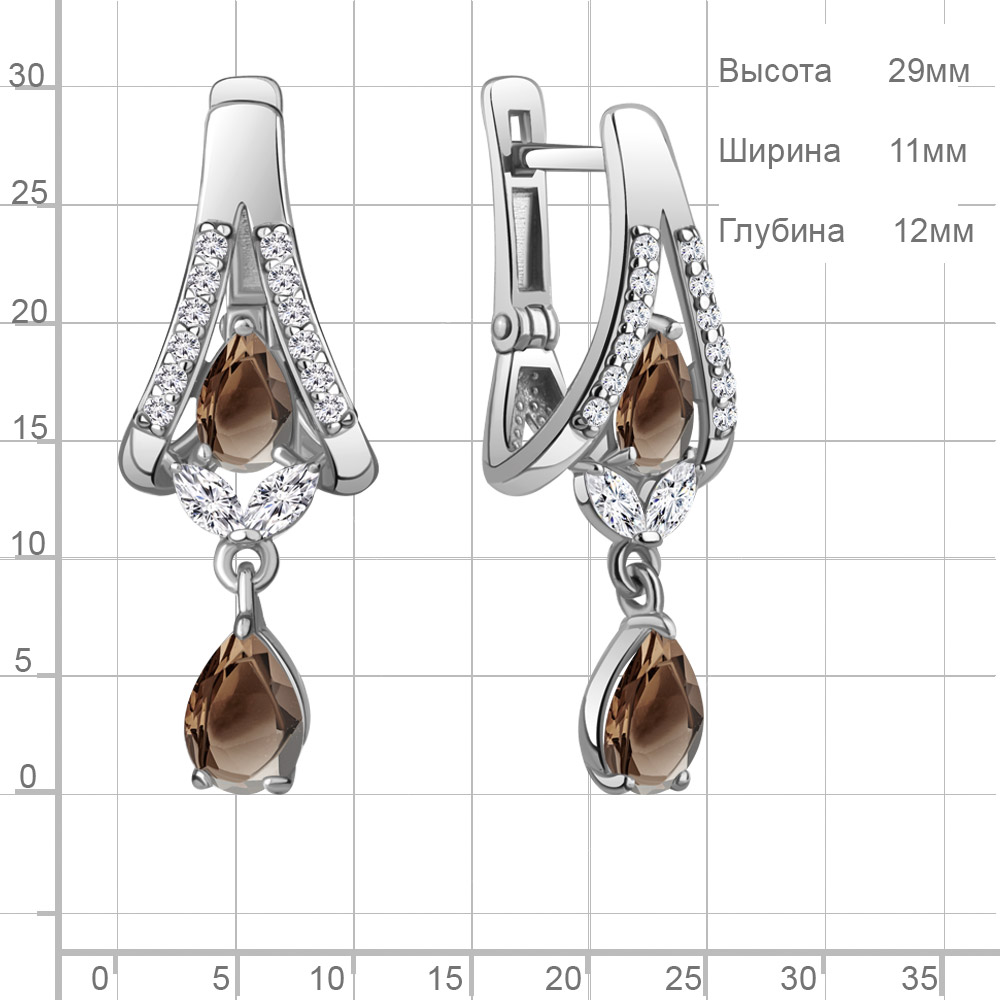 4327801А Серьги из Серебра с кварцами дымчатыми, фианитами