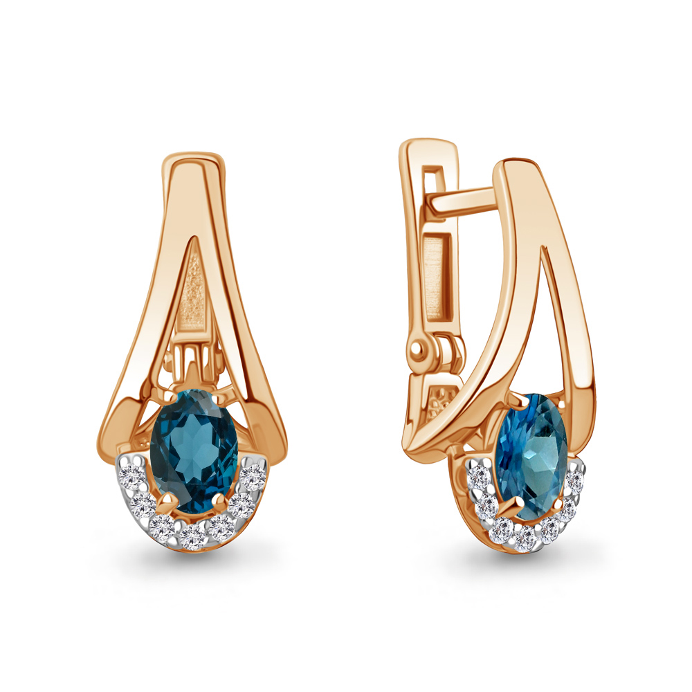 4328808А Серьги из Серебра с топазами лондон блю, фианитами