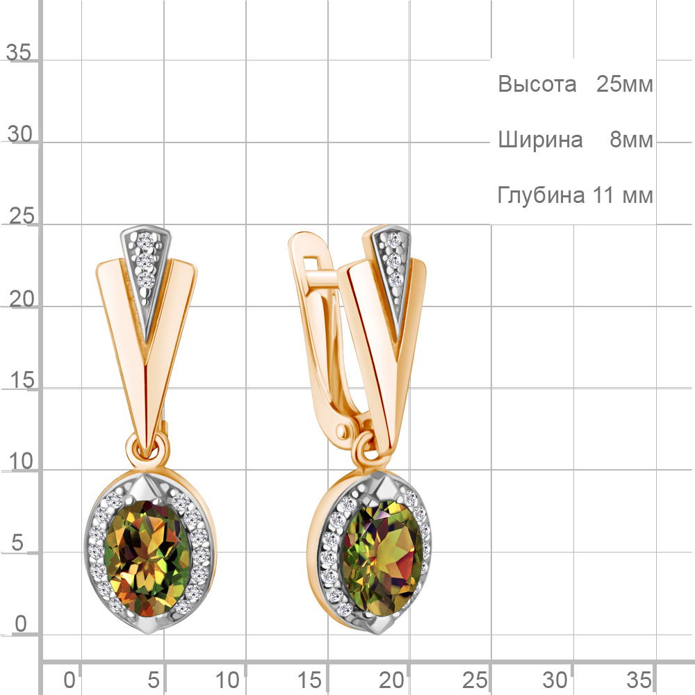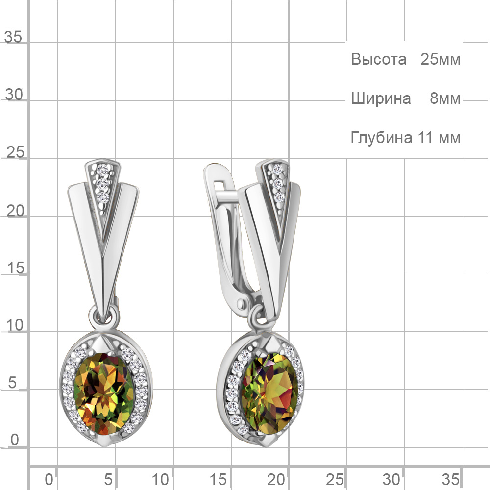 4387919А Серьги из Серебра с султанитами иск., фианитами