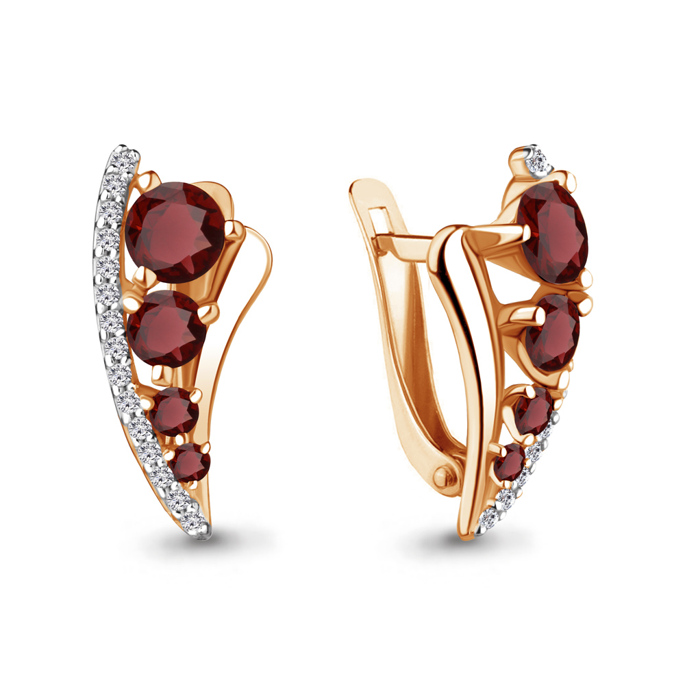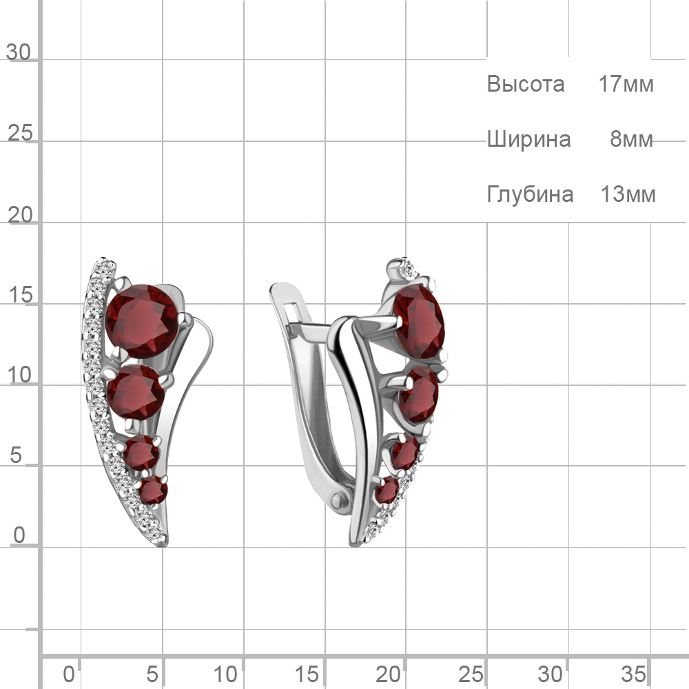 4403203А Серьги из Серебра с гранатами, фианитами
