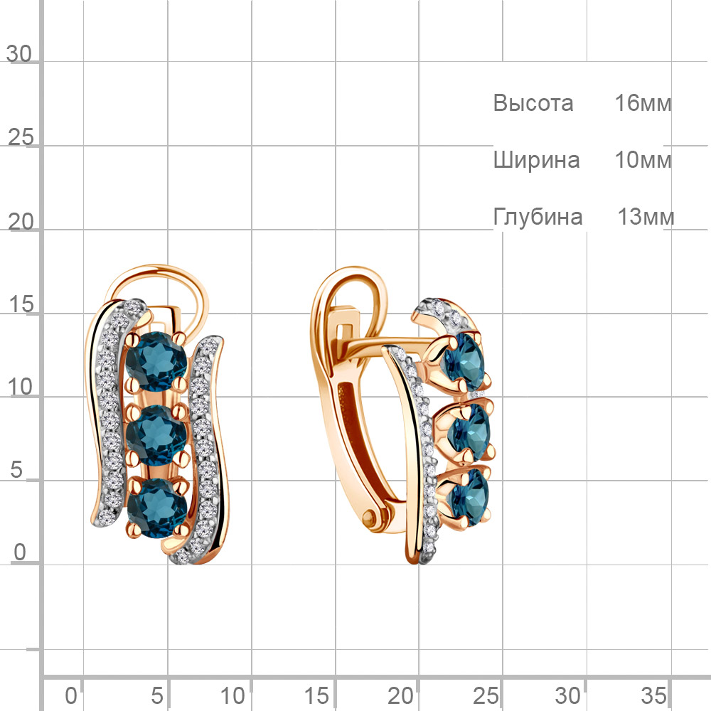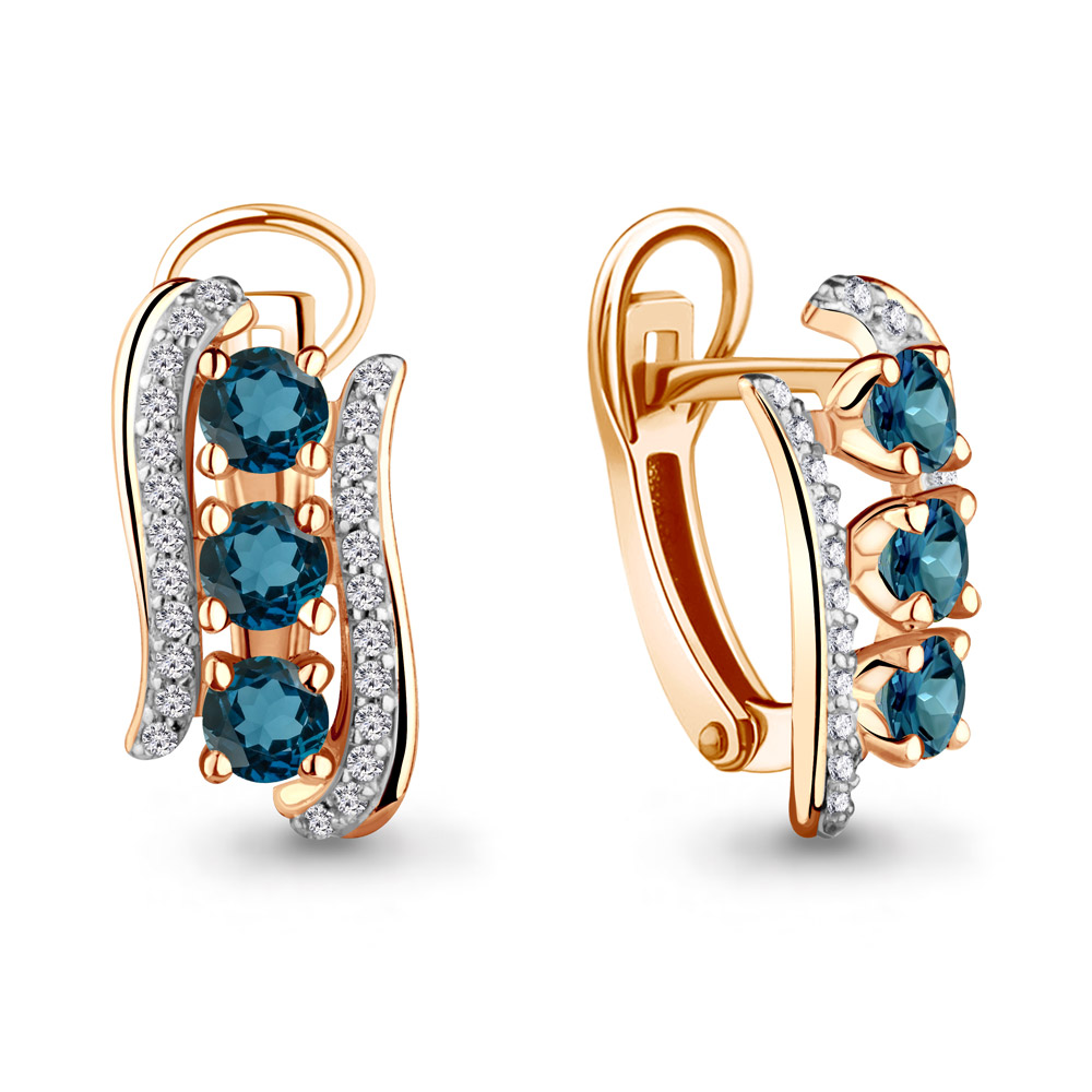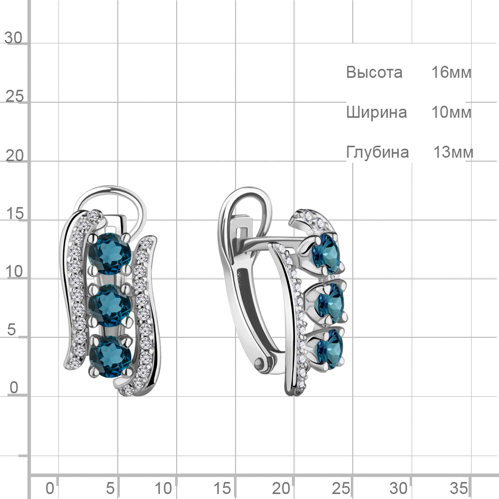 4403408А Серьги из Серебра с топазами лондон блю, фианитами