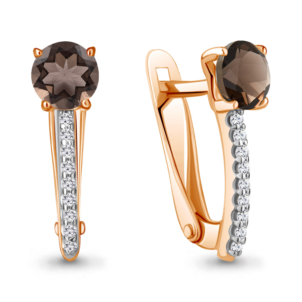 4406201А Серьги из Серебра с кварцами дымчатыми, фианитами
