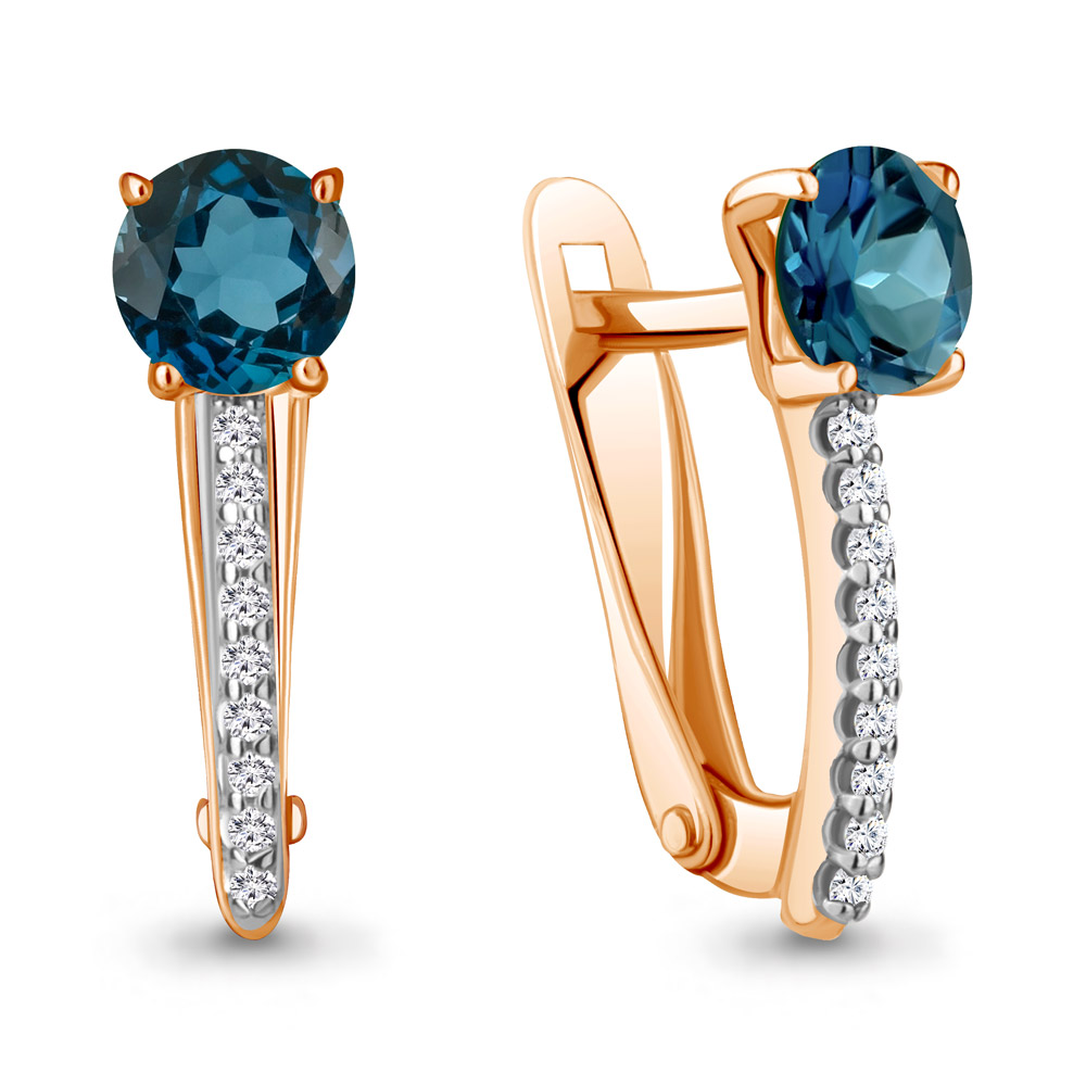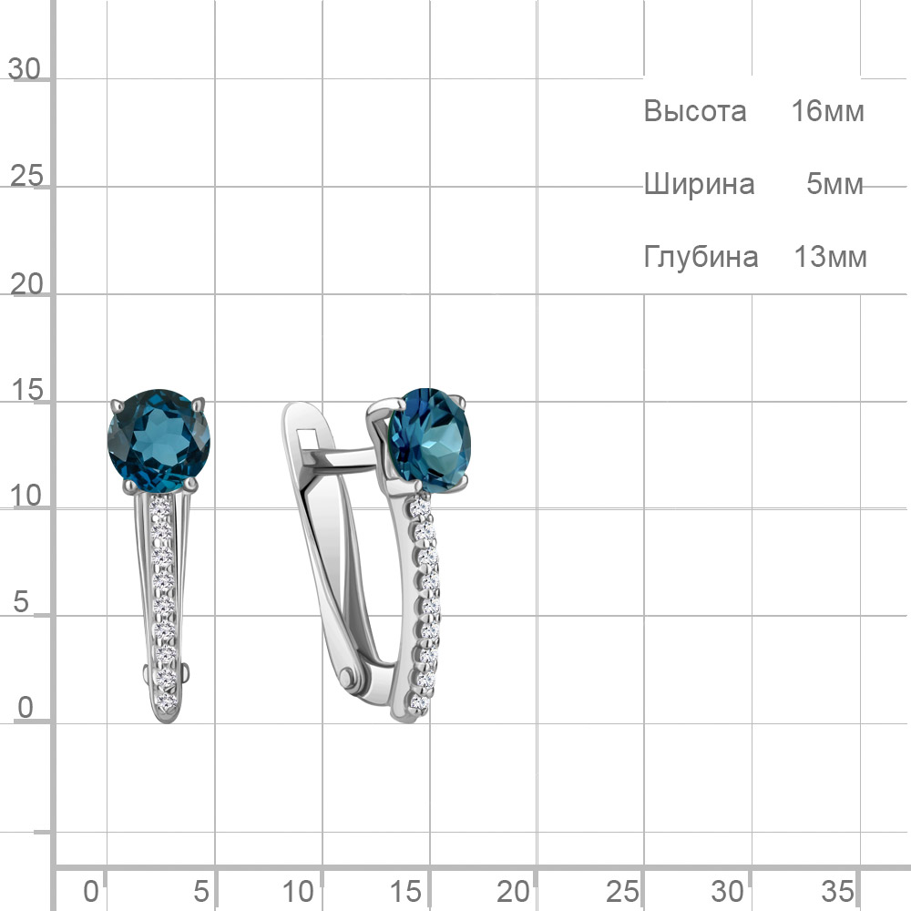 4406208А Серьги из Серебра с топазами лондон блю, фианитами