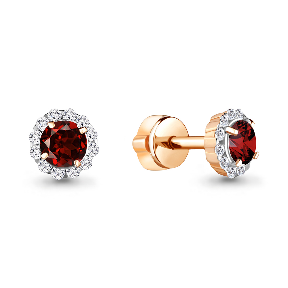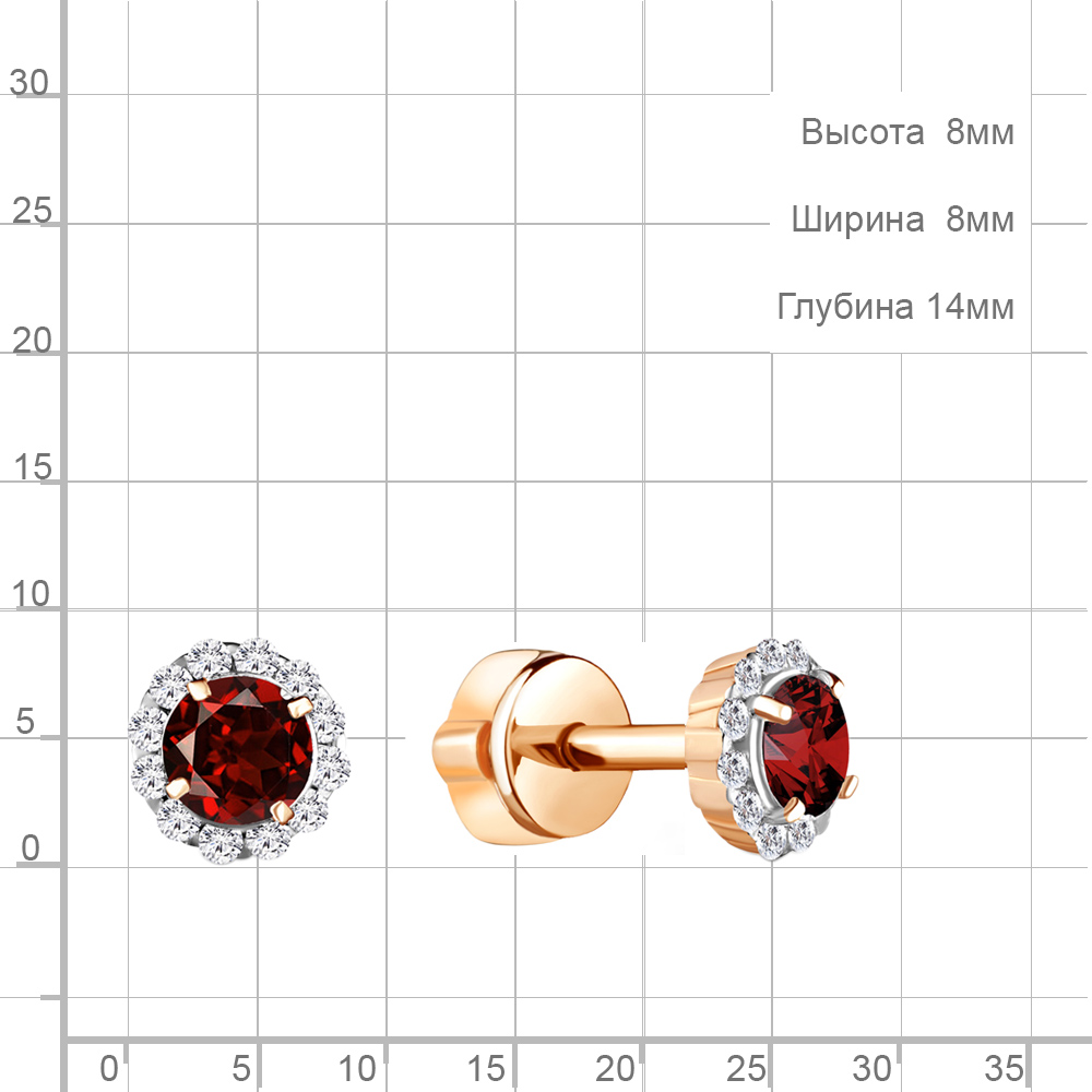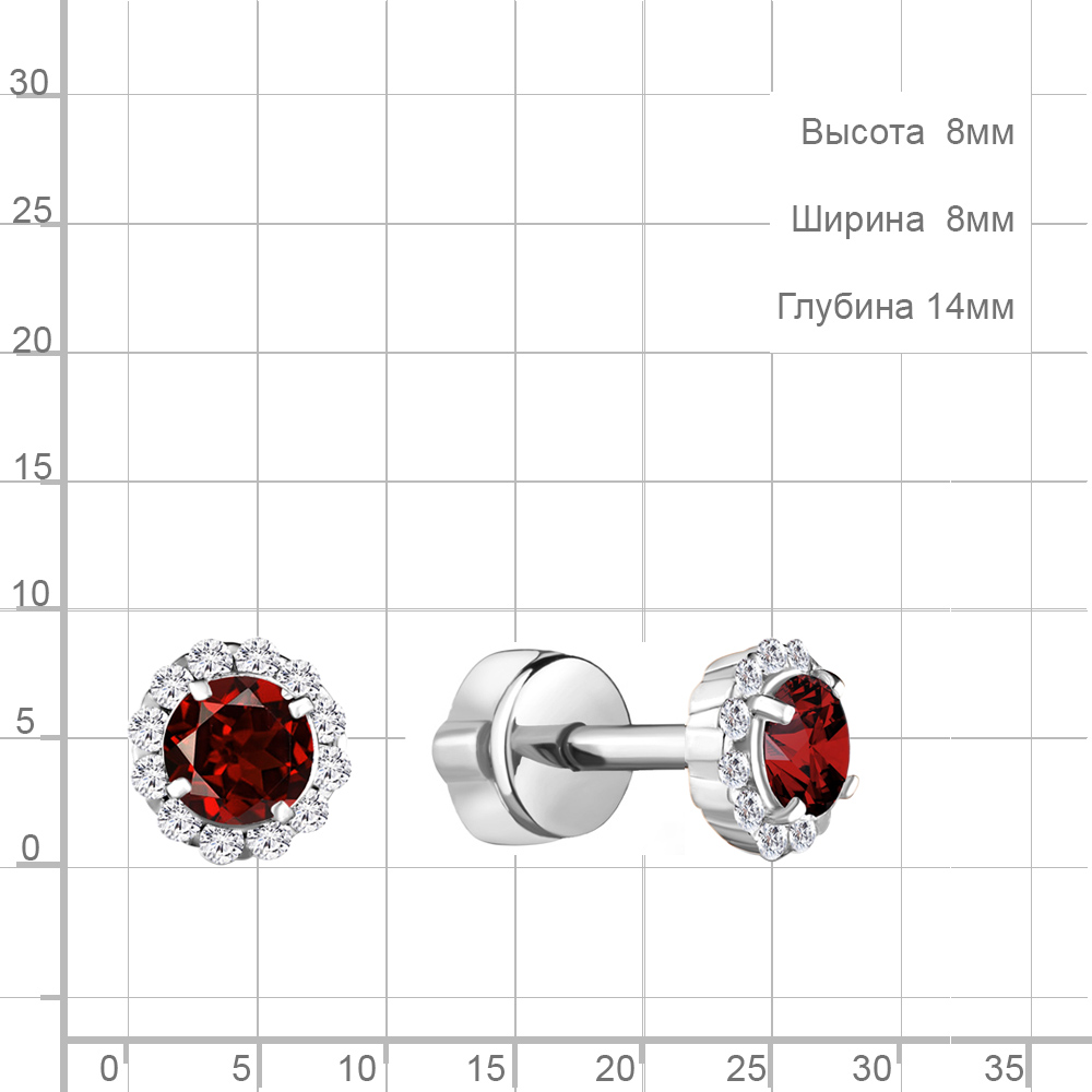 4408603А Серьги из Серебра с гранатами, фианитами