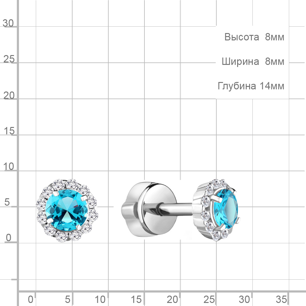 4408605А Серьги из Серебра с топазами свисс блю, фианитами