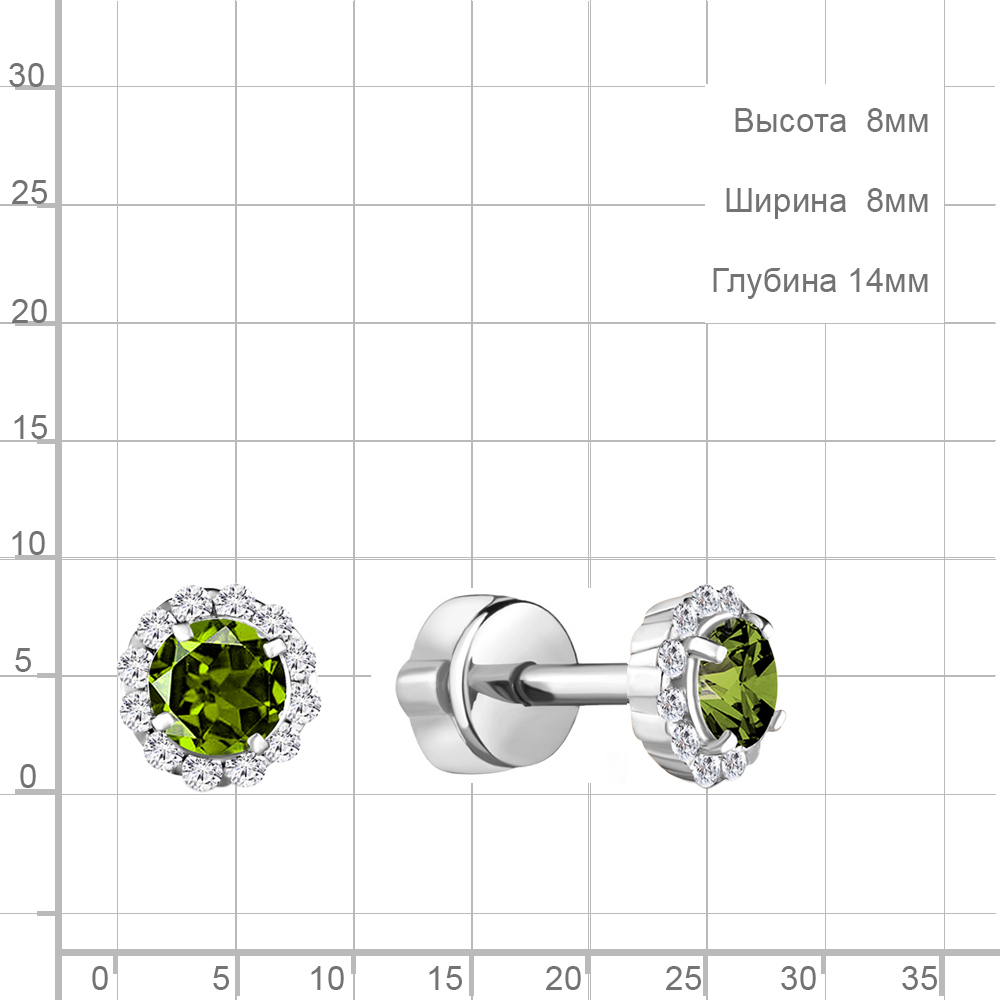 4408607А Серьги из Серебра с фианитами, хризолитами