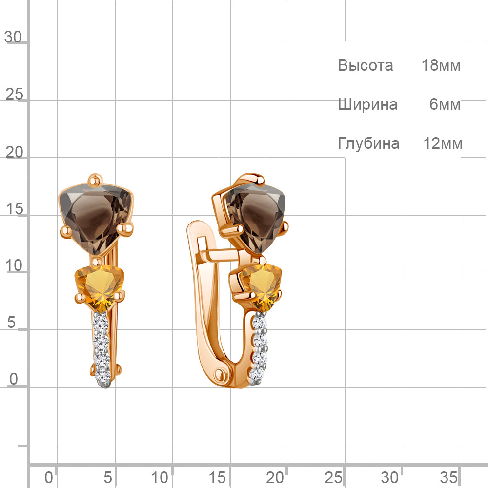 4413335А Серьги из Серебра с кварцами дымчатыми, фианитами, цитринами