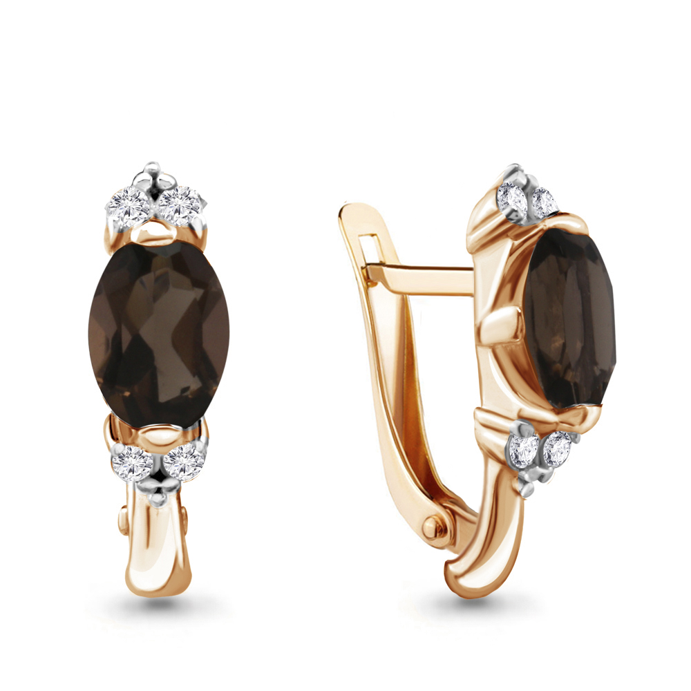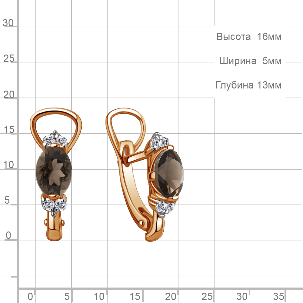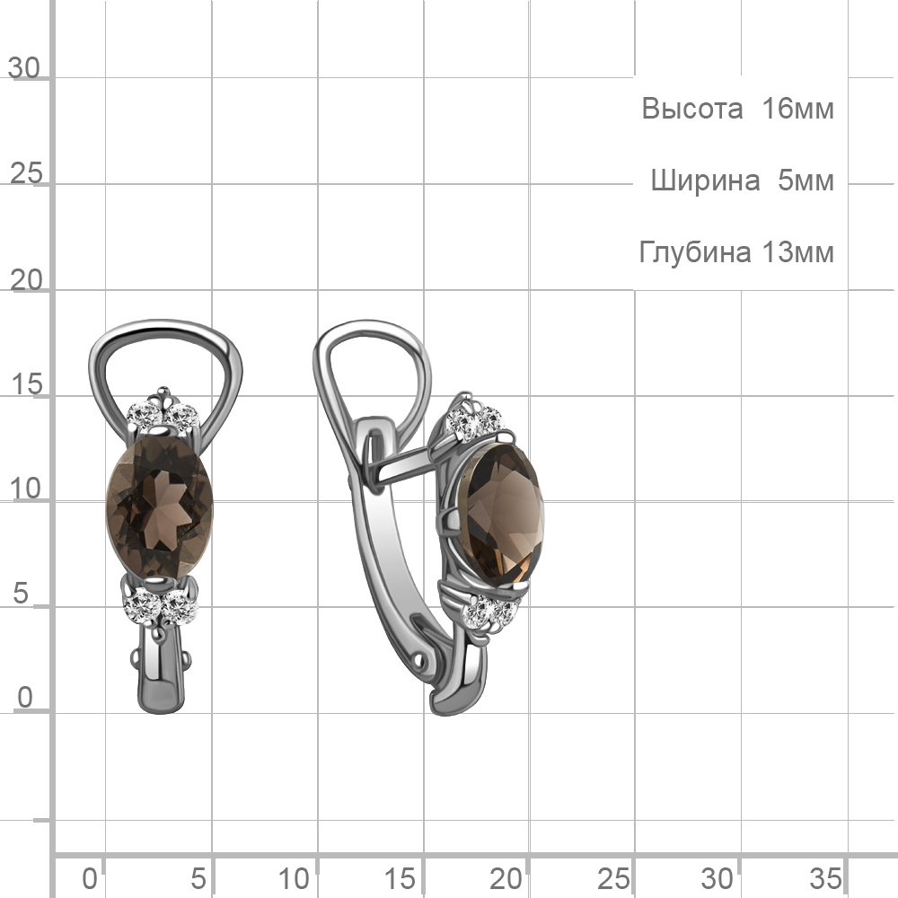 4414101 Серьги из Серебра с кварцами дымчатыми, фианитами