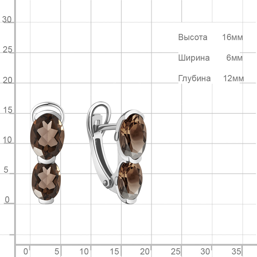 4414201 Серьги из Серебра с кварцами дымчатыми