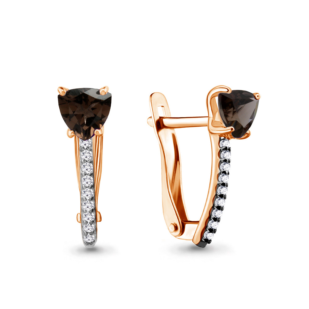 4418901А Серьги из Серебра с кварцами дымчатыми, фианитами