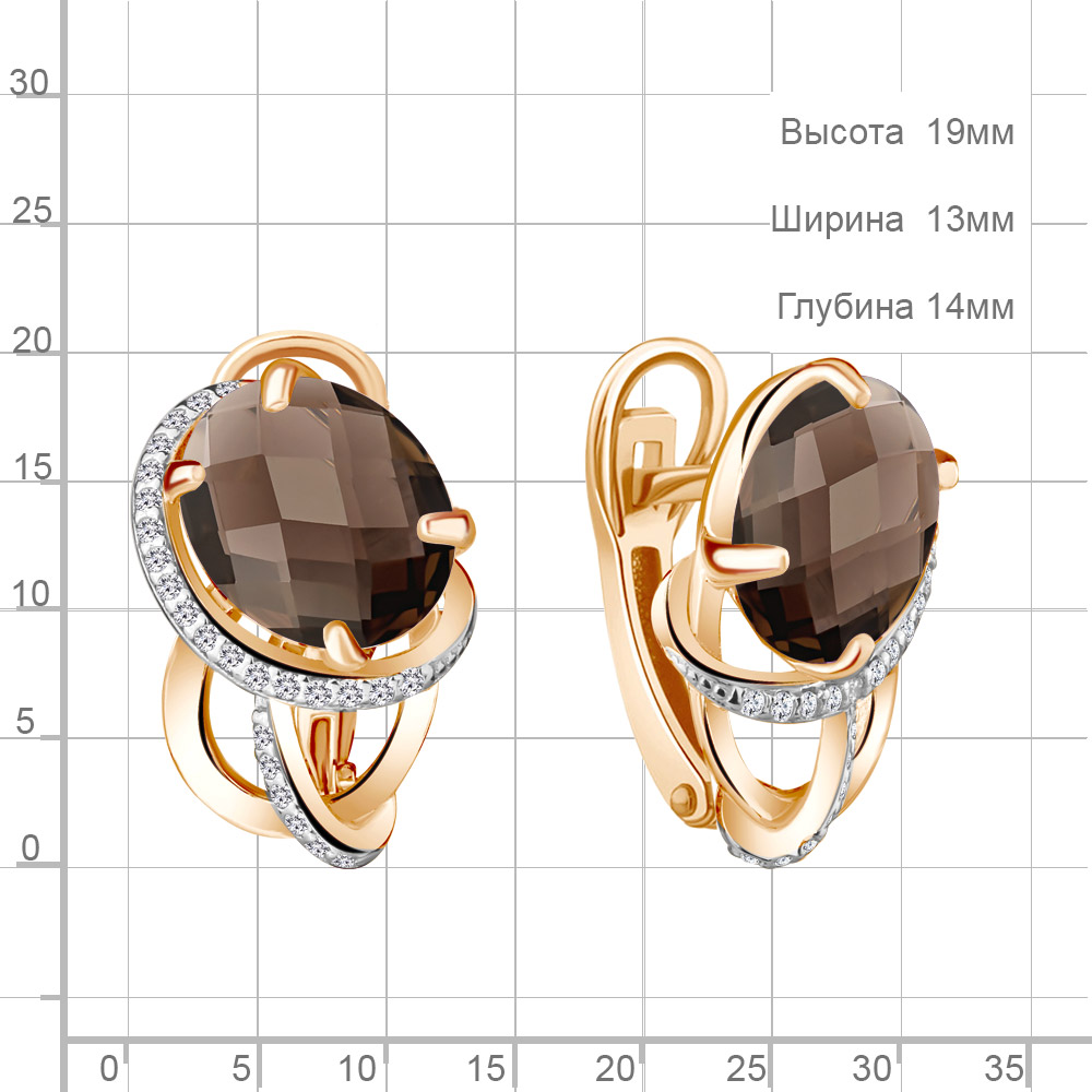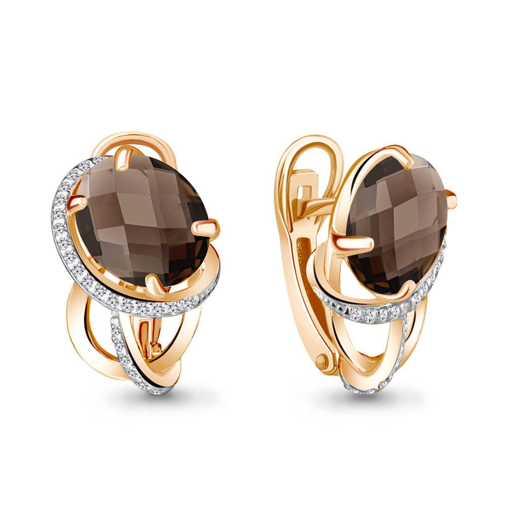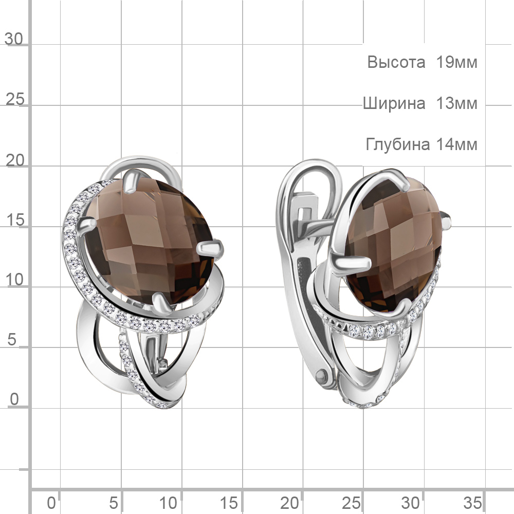 4422901А Серьги из Серебра с кварцами дымчатыми, фианитами