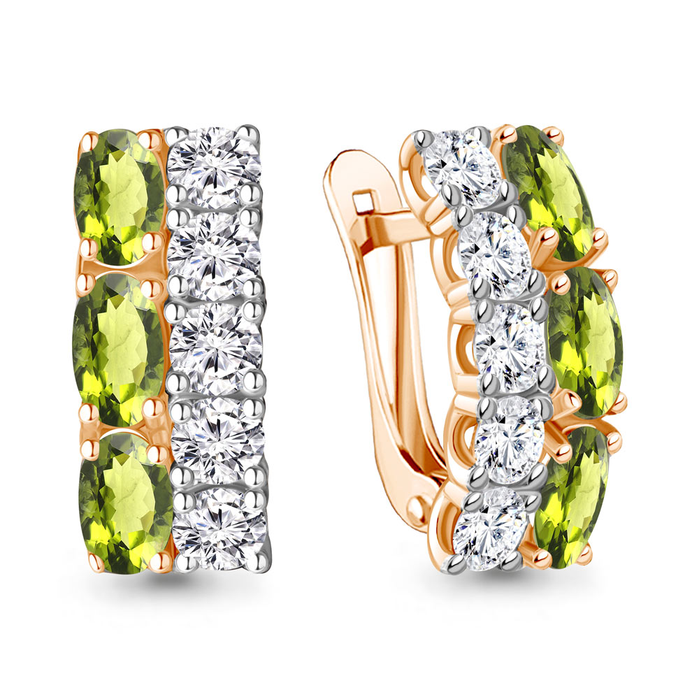 4429607А Серьги из Серебра с фианитами, хризолитами