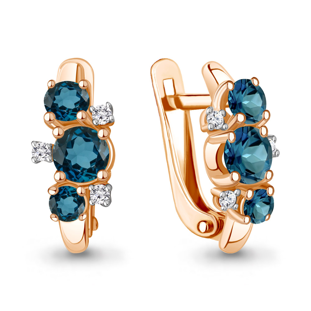 4429708 Серьги из Серебра с топазами лондон блю, фианитами