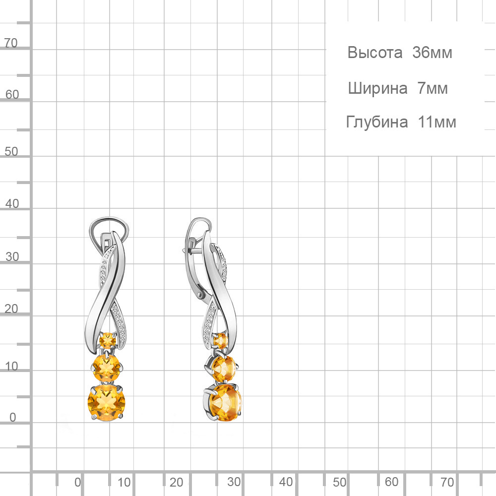 4431606А Серьги из Серебра с фианитами, цитринами