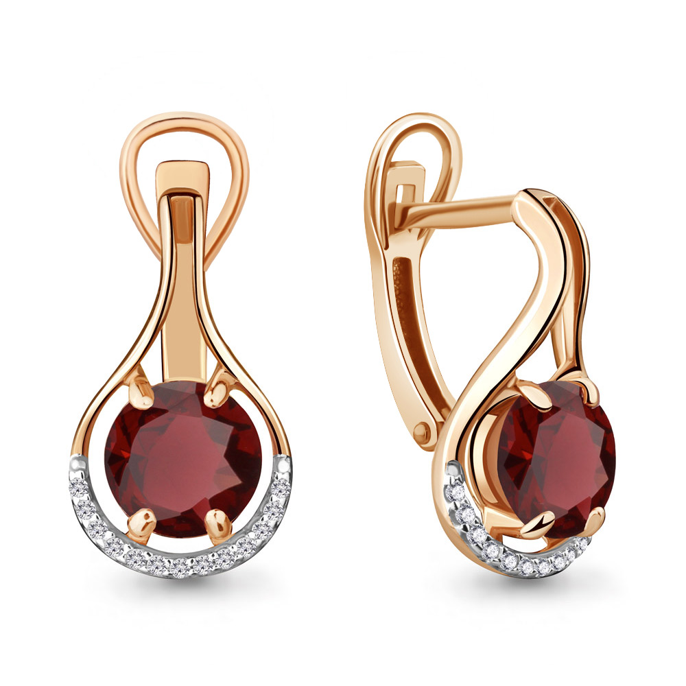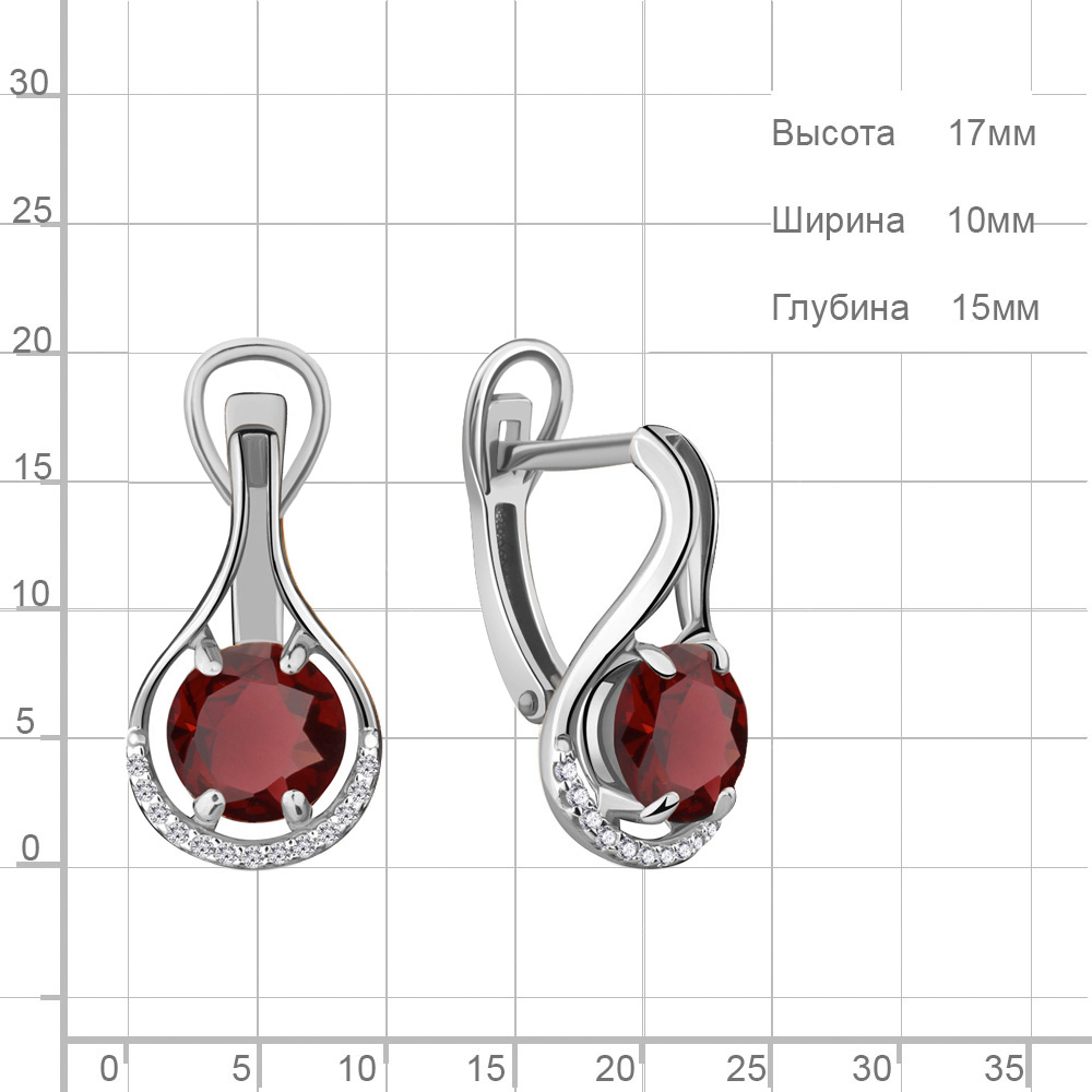 4431803А Серьги из Серебра с гранатами, фианитами