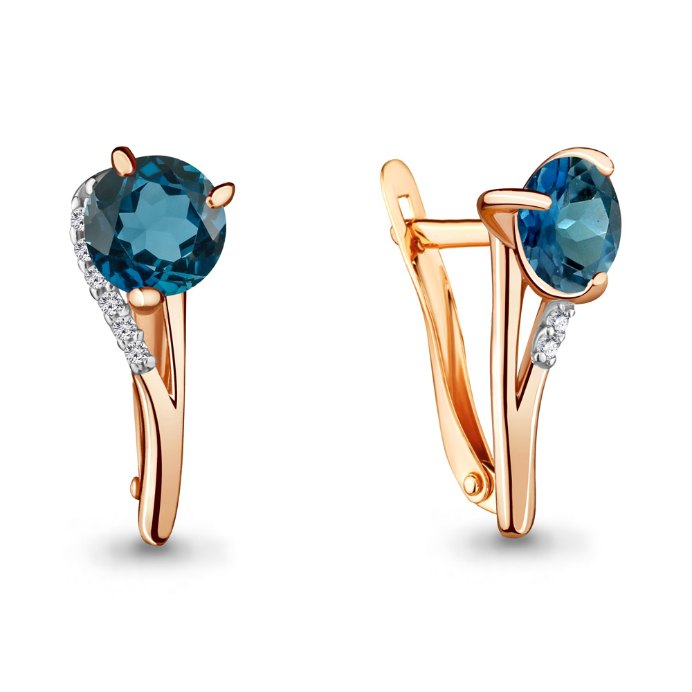 4434508А Серьги из Серебра с топазами лондон блю, фианитами