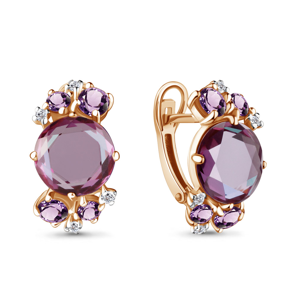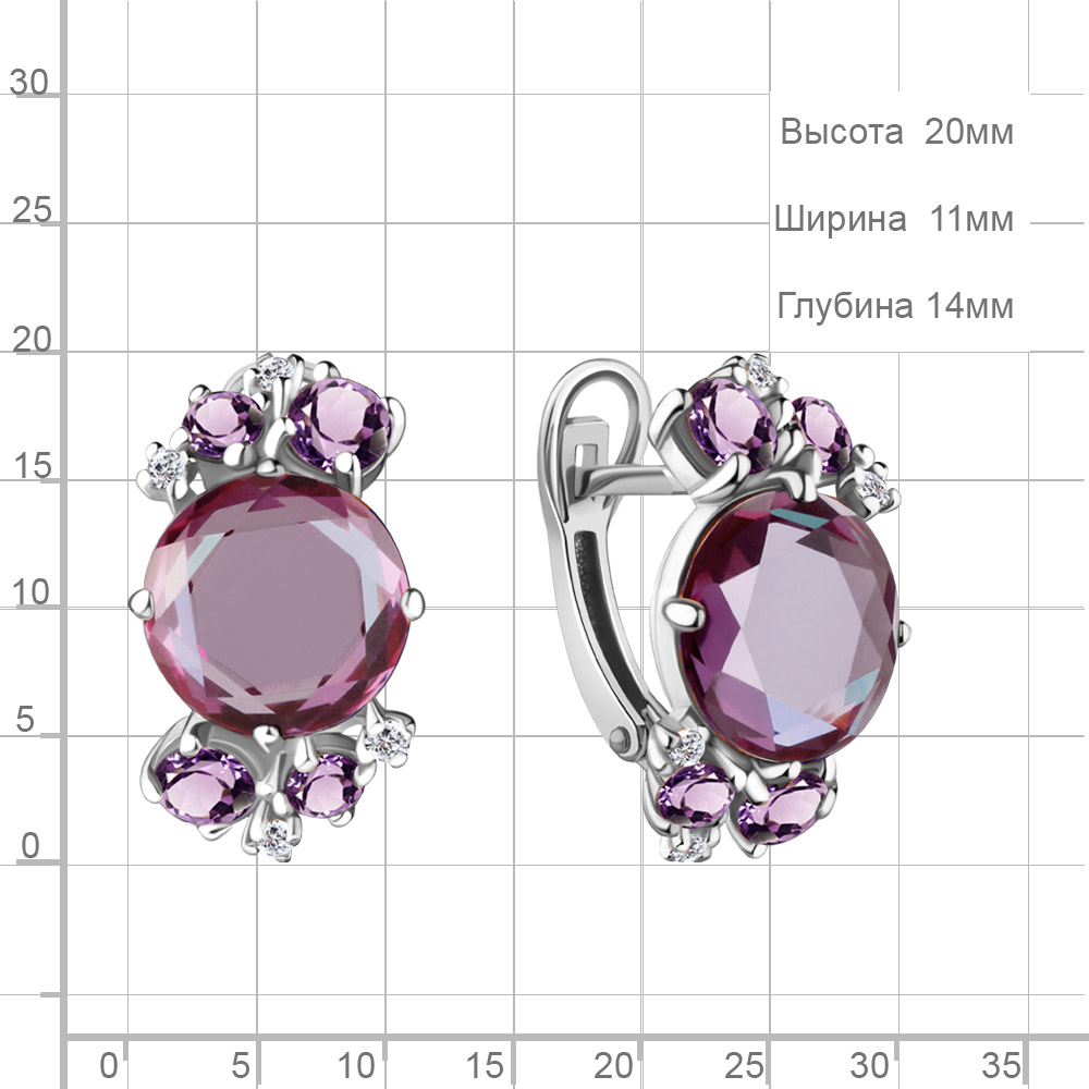 4440728А Серьги из Серебра с александритами иск., аметистами, фианитами
