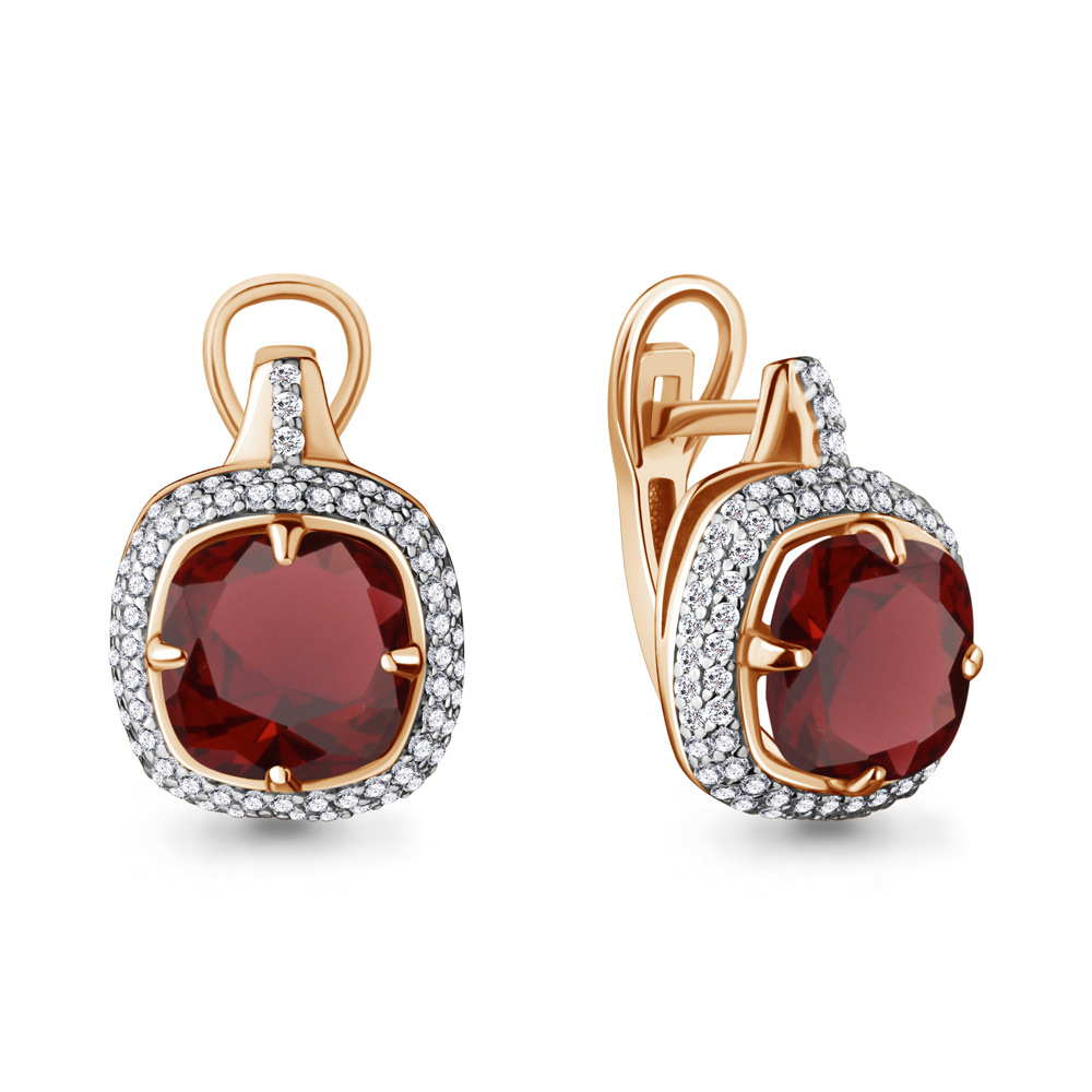 4442303А Серьги из Серебра с гранатами, фианитами из коллекции "Фруктовый лёд"