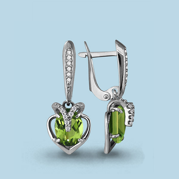 4449507А Серьги из Серебра с фианитами, хризолитами