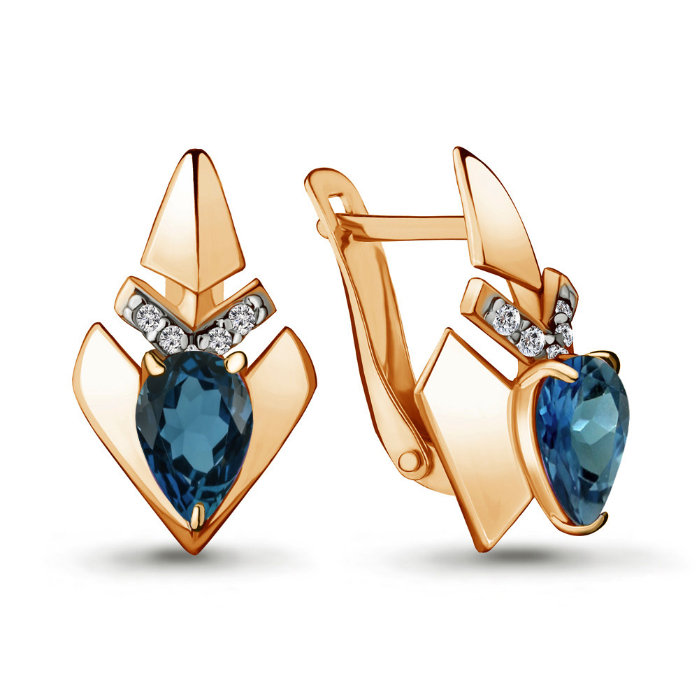 4460508А Серьги из Серебра с топазами лондон блю, фианитами