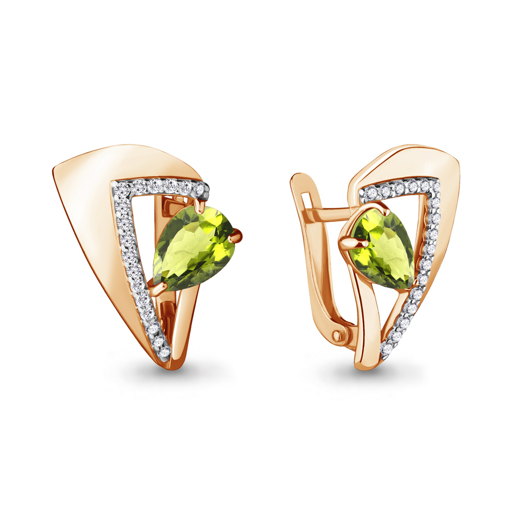 4460807А Серьги из Серебра с фианитами, хризолитами из коллекции "Sci-Fi"