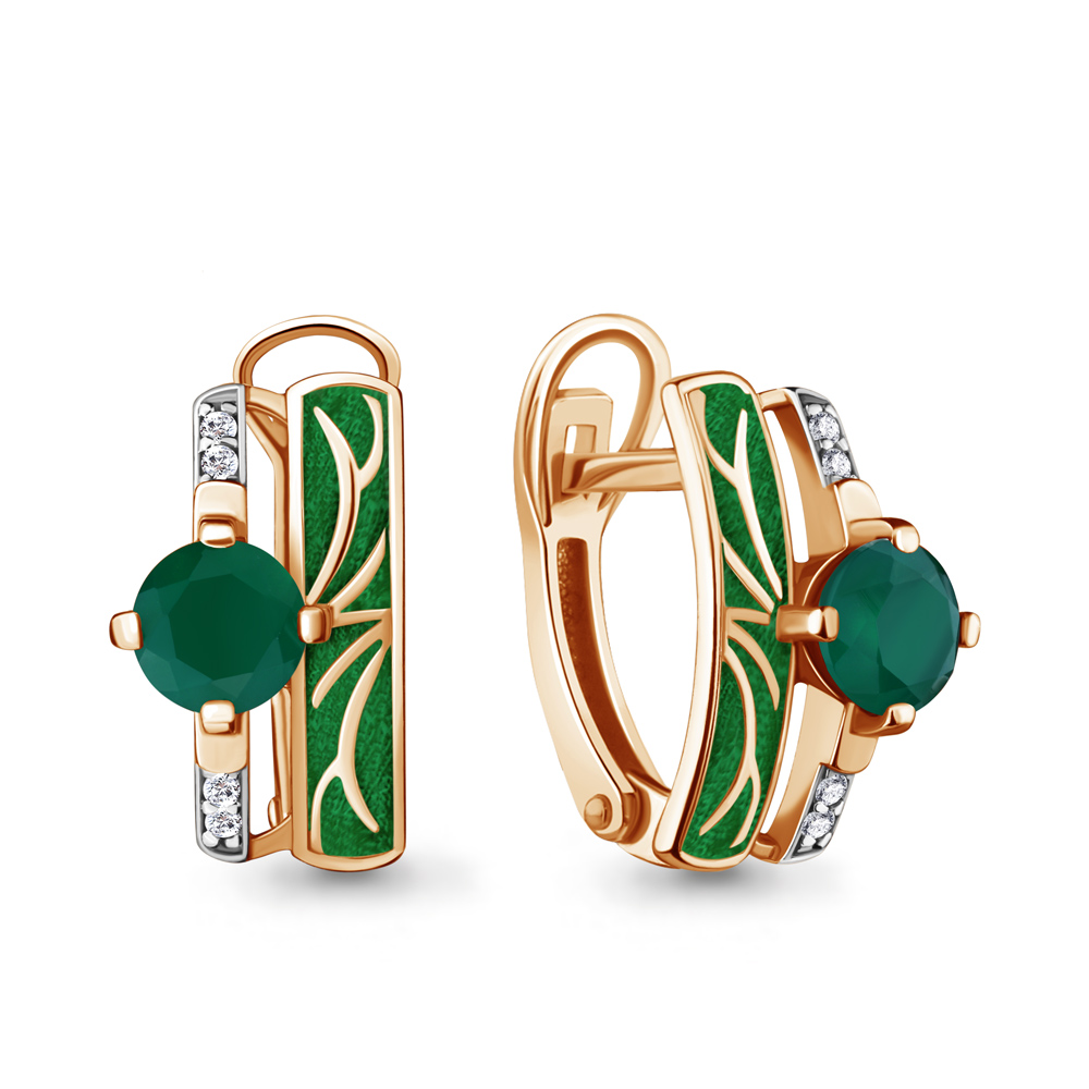 4463909А Серьги из Серебра с агатами, фианитами, эмалью из коллекции "Rio"