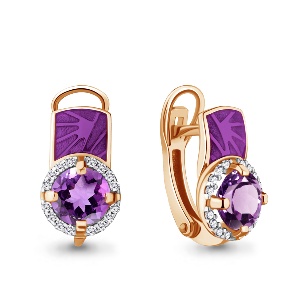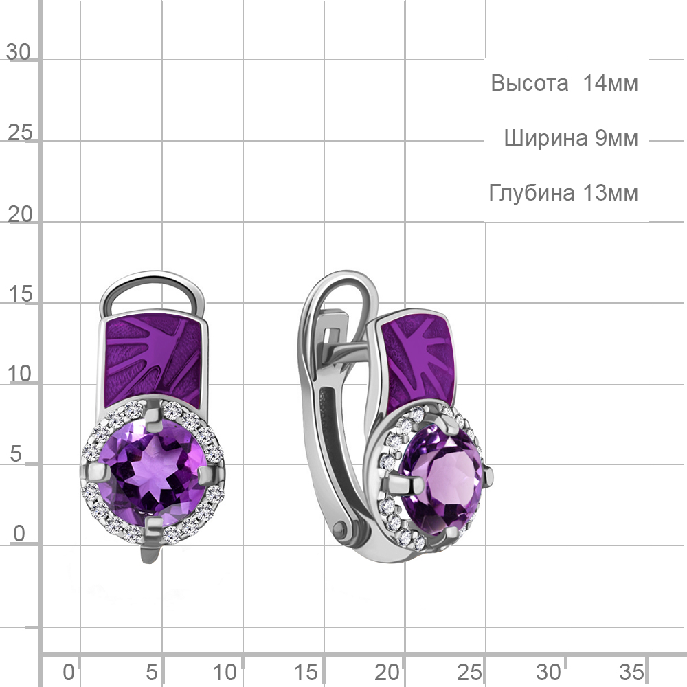 4464104А Серьги из Серебра с аметистами, фианитами, эмалью из коллекции "Rio"