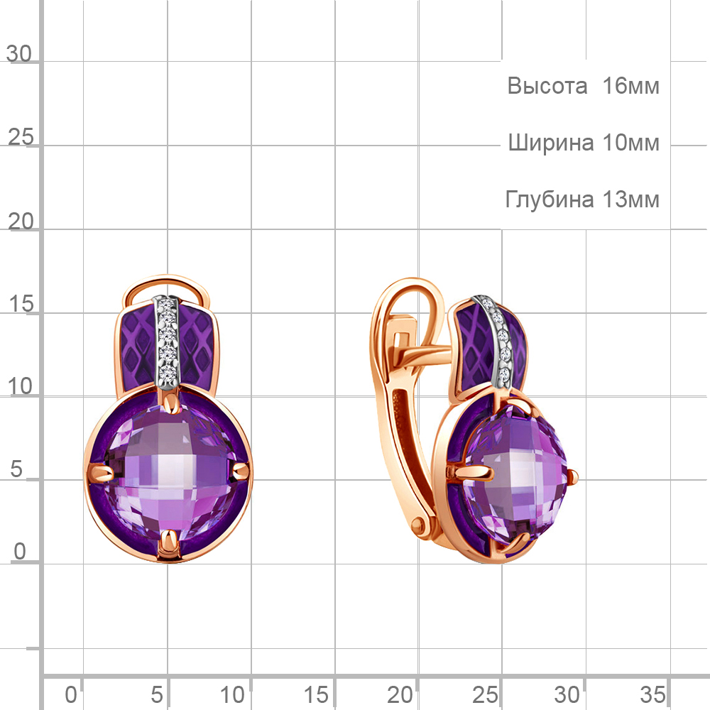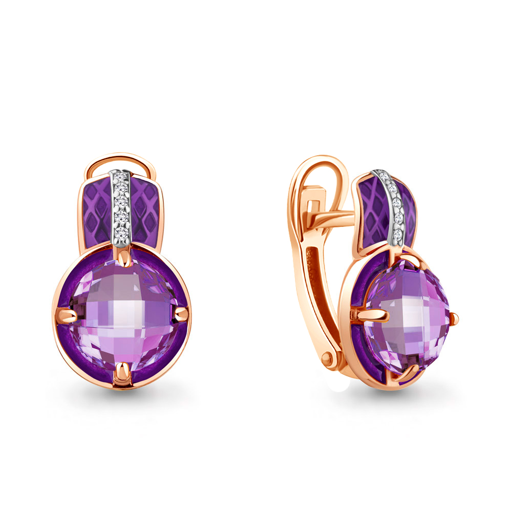 4464204А Серьги из Серебра с аметистами, фианитами, эмалью из коллекции "Rio"