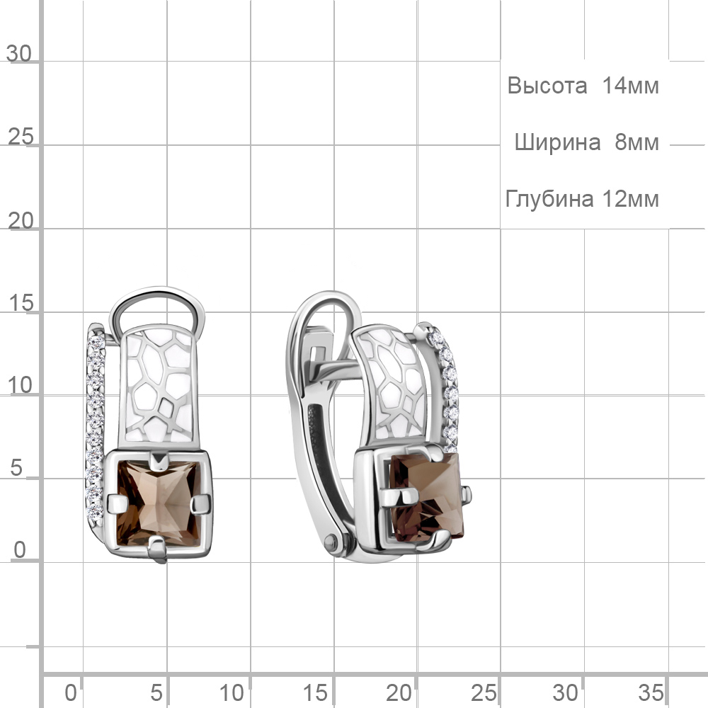 4464501А Серьги из Серебра с кварцами дымчатыми, фианитами, эмалью из коллекции "Rio"