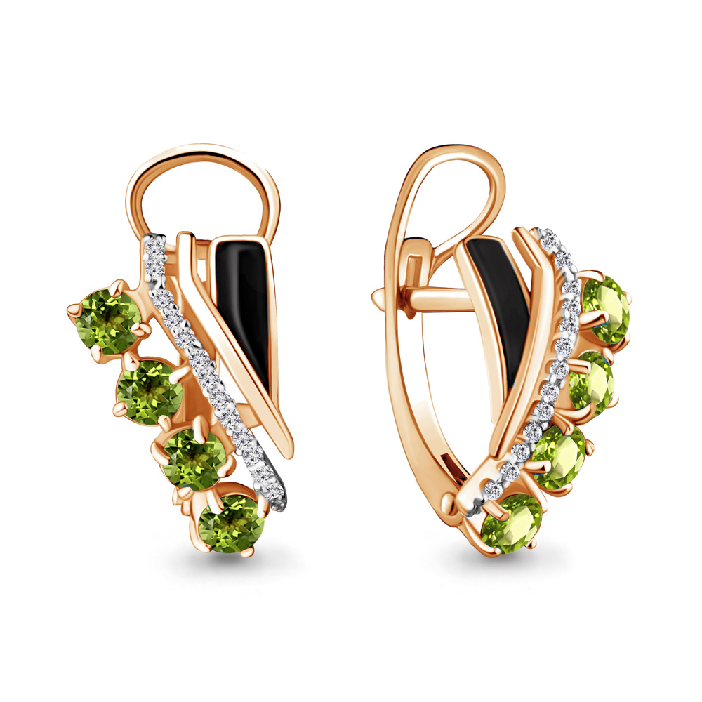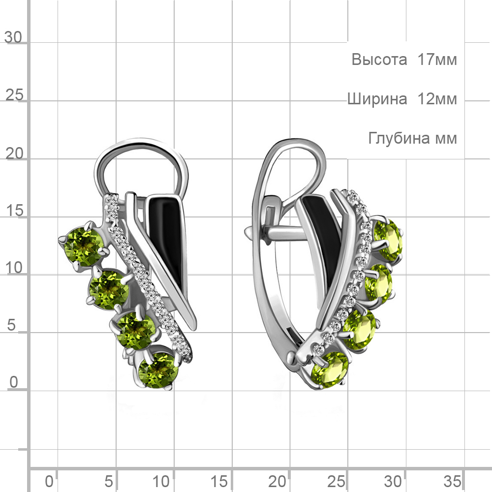 4464807А Серьги из Серебра с фианитами, хризолитами, эмалью из коллекции "Rio"