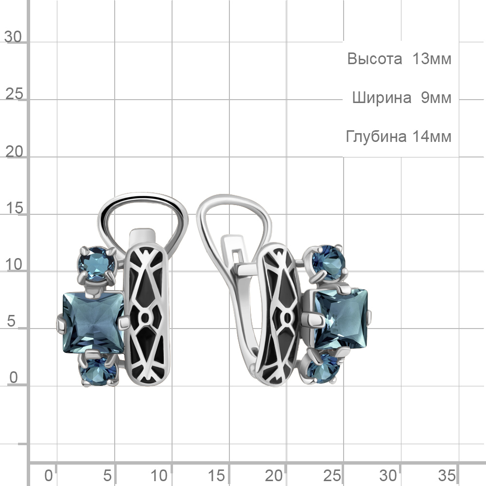4464908 Серьги из Серебра с топазами лондон блю, эмалью из коллекции "Rio"